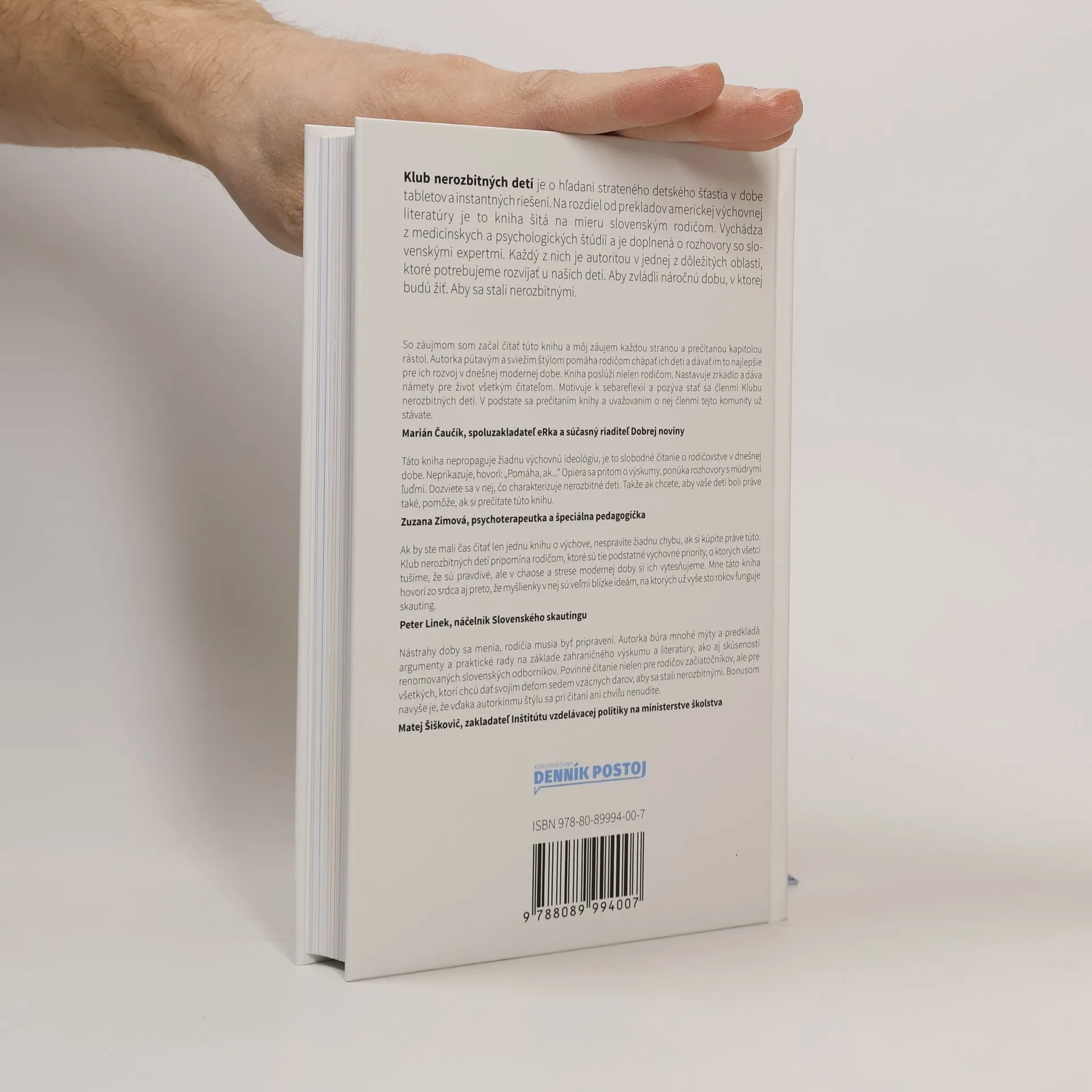 Klub nerozbitných detí je o hľadaní strateného detského šťastia v dobe tabletov a instantných riešení. Na rozdiel od prekladov americkej výchovnej literatúry je to kniha šitá na mieru slovenským rodičom. Vychádza z medicínskych a psychologických štúdií a je doplnená o rozhovory so slovenskými expertmi. Každý z nich je autoritou v jednej z dôležitých oblastí, ktoré potrebujeme rozvíjať u našich detí. Aby zvládli náročnú dobu, v ktorej budú žiť. Aby sa stali nerozbitnými.