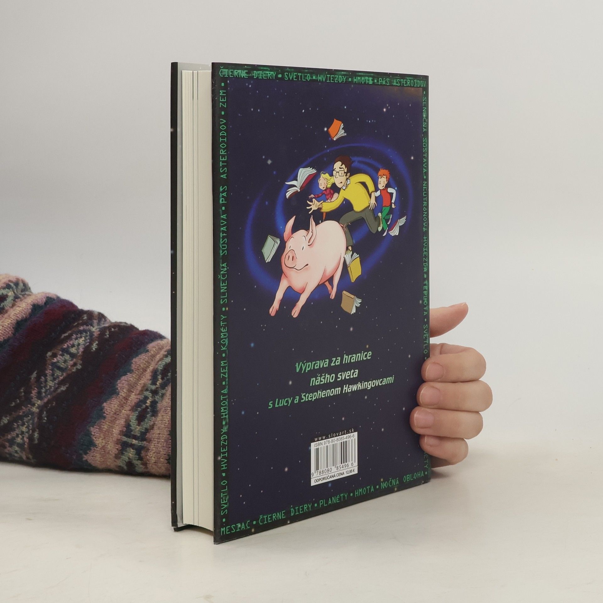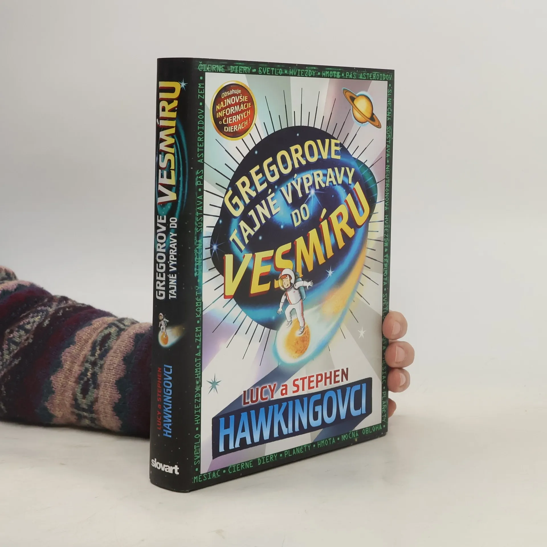 Kniha, ktorú spolu napísali svetoznámy astronóm Stephen Hawking a jeho dcéra Lucy, kombinuje napínavý a zábavný príbeh s množstvom zaujímavých faktov o vesmíre vrátane najnovších poznatkov Stephena Hawkinga o čiernych dierach. Keď Gregor hľadá svoje domáce prasiatko v susednej záhrade, stretne nových susedov Annu a jej otca Erika, ktorý je uznávaný vedec. Otvoria sa mu dvere do celkom nového sveta. Do sveta, kde sa dá na svet pozerať z iného pohľadu – z vesmíru.