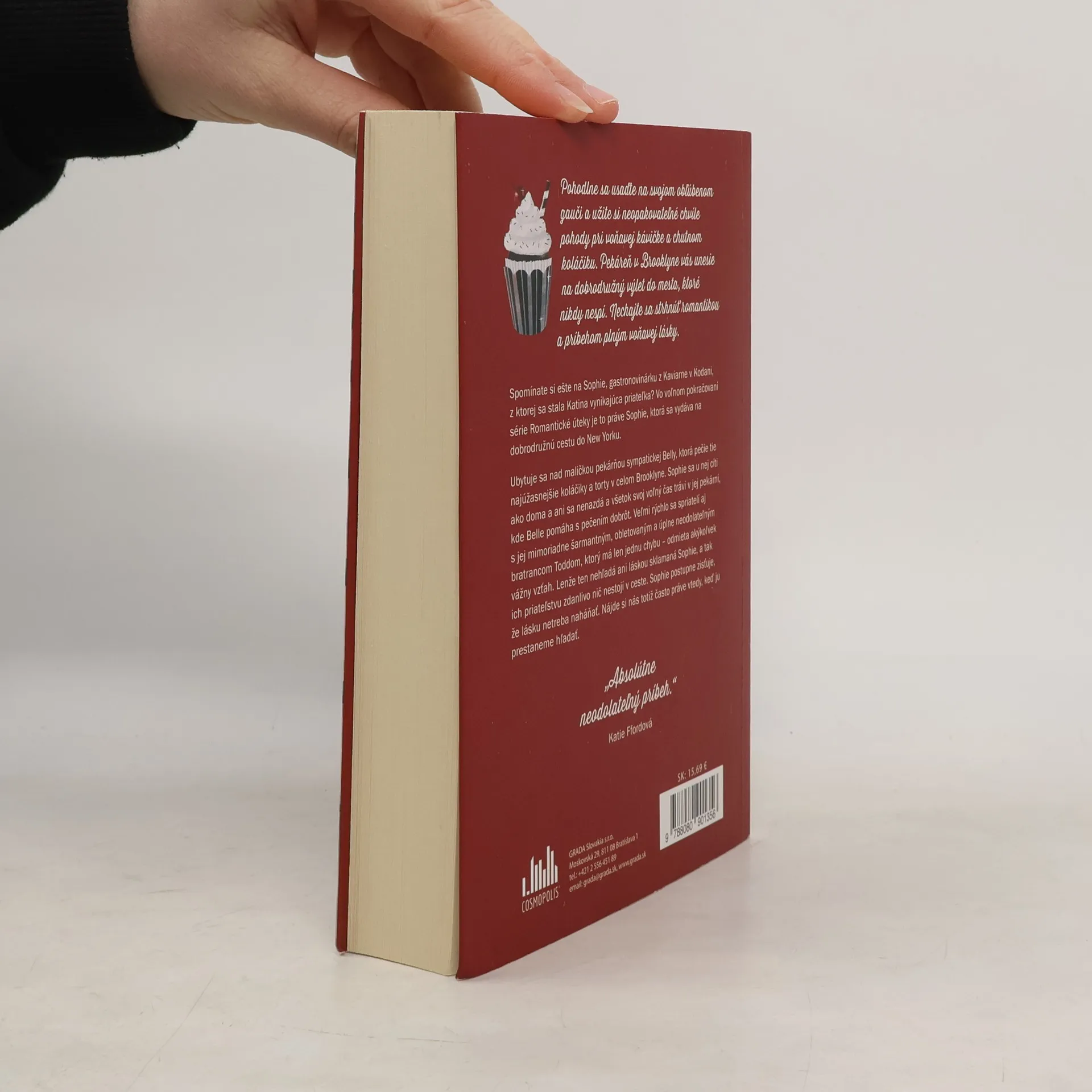 Pohodlne sa usaďte na svojom obľúbenom gauči a užite si neopakovateľné chvíle pohody pri voňavej kávičke a chutnom koláčiku. Pekáreň v Brooklyne vás unesie na dobrodružný výlet do mesta, ktoré nikdy nespí. Nechajte sa strhnúť romantikou a príbehom plným voňavej kávy. Spomínate si ešte na Sophie, gastronovinárku z Kaviarne v Kodani, z ktorej sa stala Katina vynikajúca priateľka? Vo voľnom pokračovaní série Romantické úteky je to práve Sophie, ktorá sa vydáva na dobrodružnú cestu do New Yorku. Ubytuje sa nad maličkou pekárňou sympatickej Belly, ktorá pečie tie najúžasnejšie koláčiky a torty v celom Brooklyne. Sophie sa u nej cíti ako doma a ani sa nenazdá a všetok svoj voľný čas trávi v jej pekárni, kde Belle pomáha s pečením dobrôt. Veľmi rýchlo sa spriatelí aj s jej mimoriadne šarmantným, obletovaným a úplne neodolateľným bratrancom Toddom, ktorý má len jednu chybu - odmieta akýkoľvek vážny vzťah. Lenže ten nehľadá ani láskou sklamaná Sophie, a tak ich priateľstvu zdanlivo nič nestojí v ceste. Sophie postupne zisťuje, že lásku netreba naháňať. Nájde si nás totiž často práve vtedy, keď ju prestaneme hľadať.