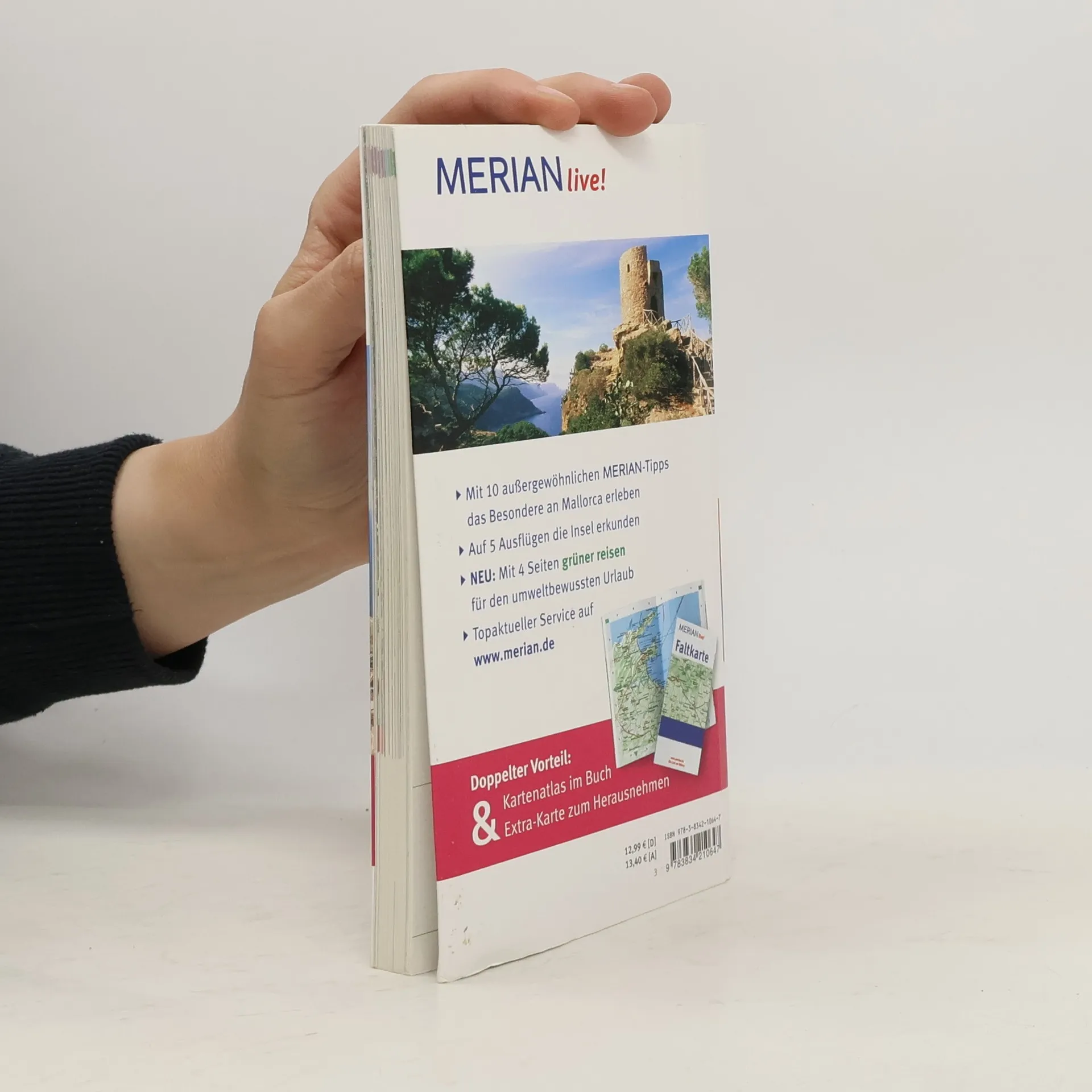 Magnet im Mittelmeer - Mallorcas Anziehungskraft ist ungebrochen. Diese Insel hat tausend Gesichter, und sie ist voller Überraschungen. Palma ist sicher das hellste, aber bei Weitem nicht das einzige Glanzlicht jeder Mallorca-Reise. Auch die anderen Orte brauchen sich nicht zu verstecken. MERIAN live! bietet: - Fundierte Beschreibungen aller wichtigen Orte und Strände sowie Sehenswürdigkeiten und Ausflugsziele - Sorgfältig ausgewählte Hotel- und Restaurantempfehlungen, Ausgeh- und Shoppingadressen sowie Tipps für Familien - Empfehlungen für den umweltbewussten Urlaub im Kapitel grüner reisen - 10 MERIAN-TopTen stellen die Höhepunkte der Insel vor - 10 MERIAN-Tipps führen zu den unbekannten Seiten der Insel - Stadtplan von Palma zur leichten Orientierung - Doppelter Vorteil: Kartenatlas im Buch und Extra-Karte zum Herausnehmen