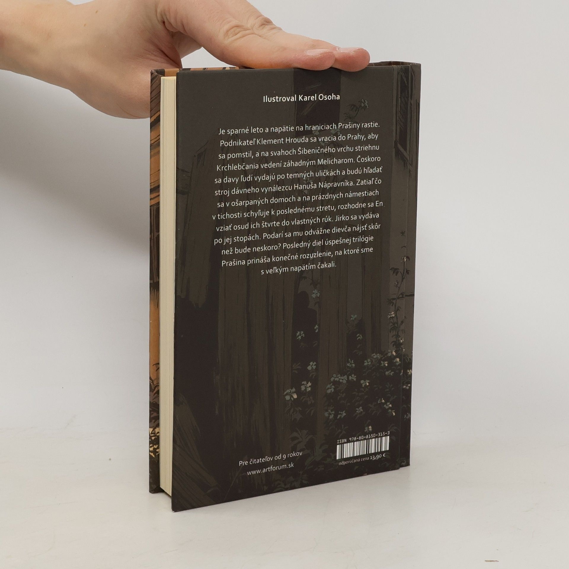 Je sparné leto a napätie na hraniciach Prašiny rastie. Podnikateľ Klement Hrouda sa vracia do Prahy, aby sa pomstil, a na svahoch Šibeničného vrchu striehnu Krchlebčania, vedení záhadným Melicharom. Čoskoro sa davy ľudí vydajú po temných uličkách a budú hľadať stroj dávneho vynálezcu Hanuša Nápravníka. Zatiaľ čo sa v ošarpaných domoch a na prázdnych námestiach v tichosti schyľuje k poslednému stretu, rozhodne sa En vziať osud ich štvrte do vlastných rúk. Jirko sa vydáva po jej stopách. Podarí sa mu odvážne dievča nájsť, skôr než bude neskoro? Posledný diel úspešnej trilógie Prašina prináša konečné rozuzlenie, na ktoré sme s veľkým napätím čakali.