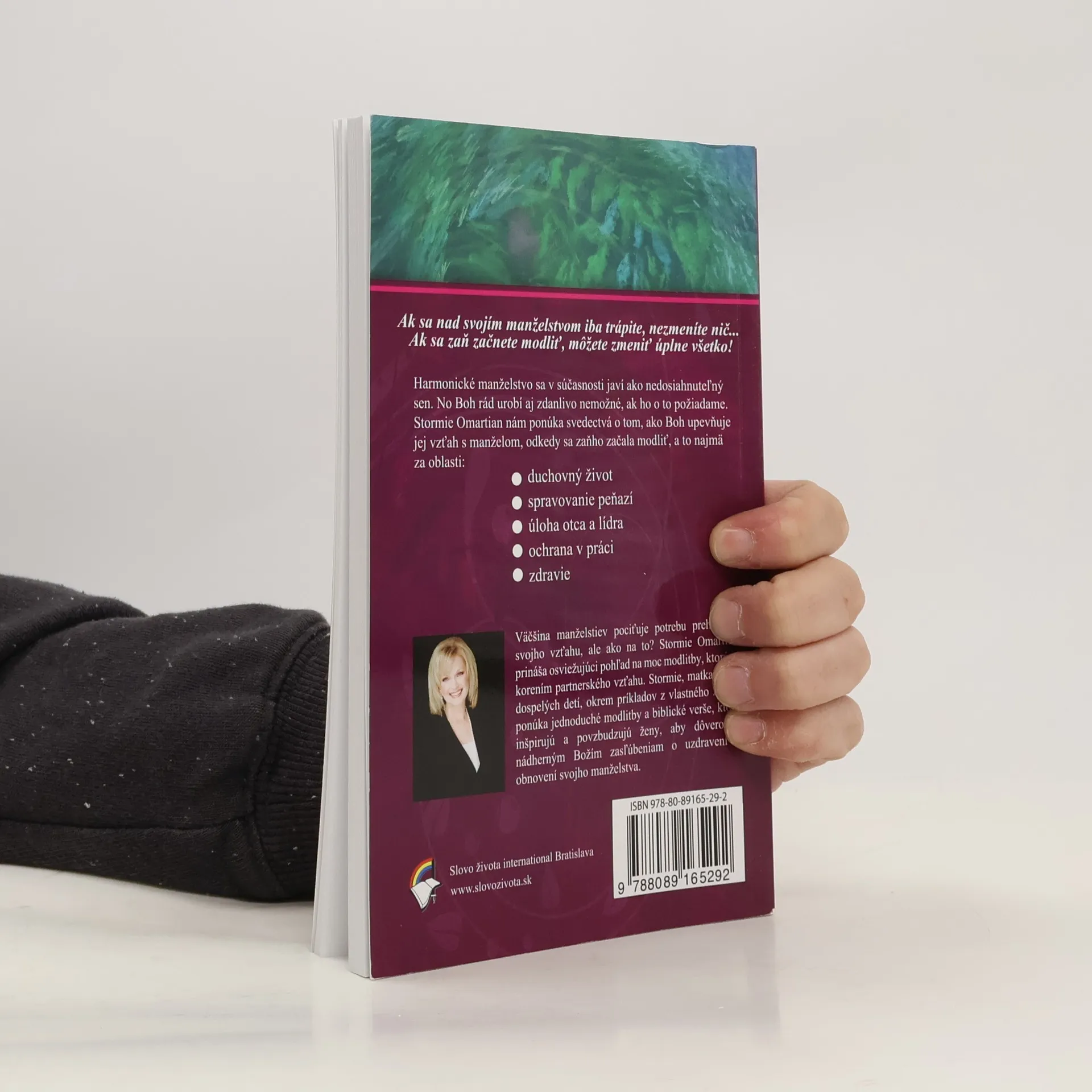 Väčšina manželstiev pociťuje potrebu prehĺbenia svojho vzťahu, ale ako na to? Stormie Omartian prináša osviežujúci pohľad na moc modlitby, ktorá je korením partnerského vzťahu. Stormie, matka troch dospelých detí, okrem príkladov z vlastného života ponúka jednoduché modlitby a biblické verše, ktoré inšpirujú a povzbudzujú ženy, aby dôverovali nádherným Božím zasľúbeniam o uzdravení a obnovení svojho manželstva. Harmonické manželstvo sa v súčasnosti javí ako nedosiahnuteľný sen. No Boh rád urobí aj zdanlivo nemožné, ak ho o to požiadame. Stormie Omartian nám ponúka svedectvá o tom, ako Boh upevňuje jej vzťah s manželom, odkedy sa zaňho začala modliť, a to najmä za tieto oblasti: duchovný život, spravovanie peňazí, úloha otca a lídra, ochrana v práci, zdravie.