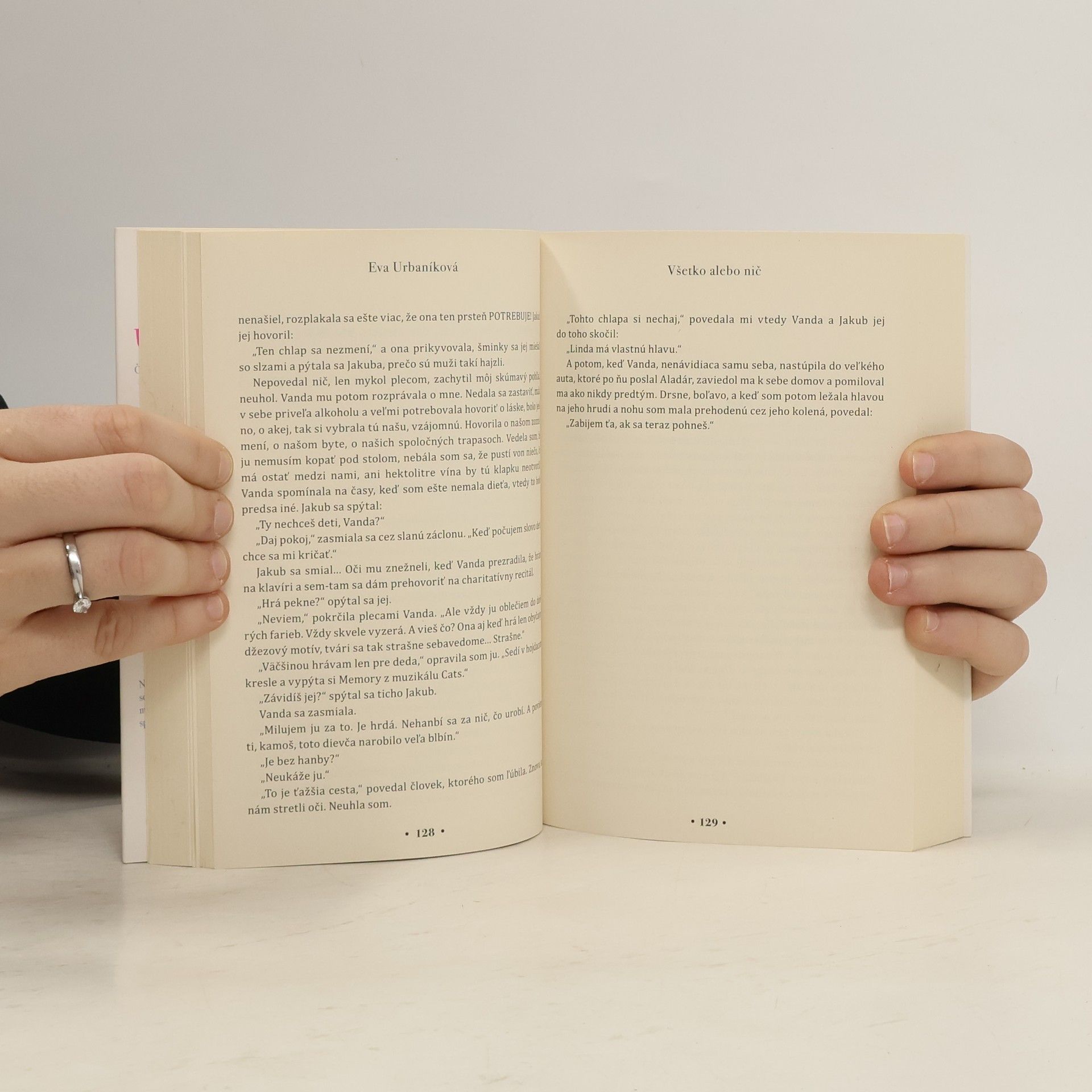 VŠETKO ALEBO NIČ je otvorený príbeh lásky, ktorá nie vždy skončí tak, ako v iných knihách. Drzo a bez servítky o vzťahoch, ktoré nás valcujú, o ženskom priateľstve, ktoré nás chráni, o mužoch, na ktorých sa zabúda… Aj keď vlastne toho nie sú hodní… Linda, Vanda a Jakub nie sú vymyslené postavy. Chodia medzi nami, ďalej sa boria so svojimi životmi a je len otázka času, kedy si znovu vypýtajú prechodné bydlisko v knižke... Lebo žijú presne tými istými radosťami a starosťami ako my všetci ostatní, len k nim pristupujú, povedzme, trošku svojskejšie... Príbeh popretkávaný sarkazmom, humorom, vášňou, smiechom, slzami, mužským egom a ženským sebavedomím. Príbeh tak skutočný, že v ňom objavíte samých seba…