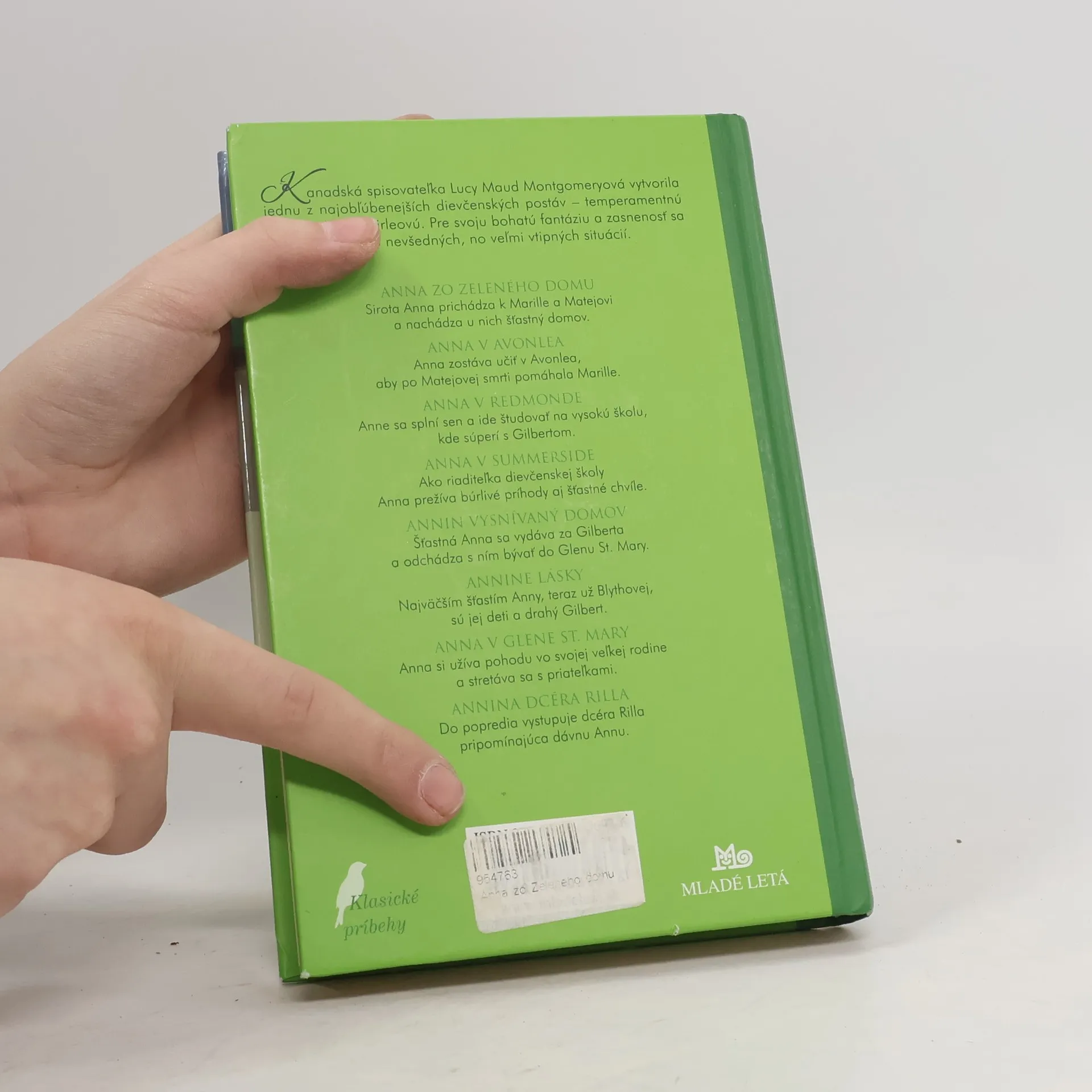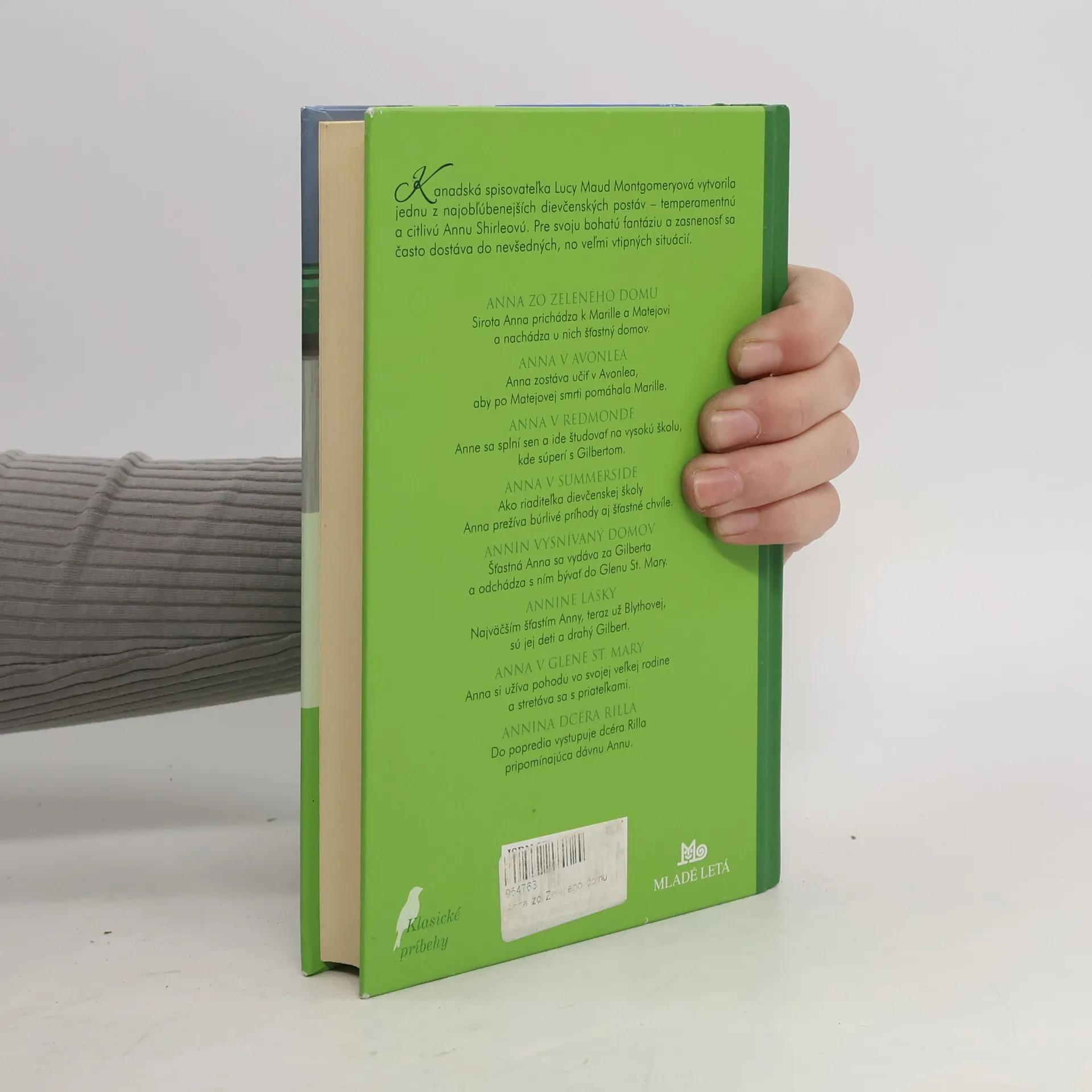 Annu Shirleyovú z knihy Lucy Maud Montgomeryovej poznajú čitatelia na celom svete. Červenovlasá jedenásťročná sirota Anna sa omylom dostane do opatery postarších súrodencov Mateja a Marilly. Mateja si získa okamžite svojím hĺbavým štebotaním, Marillu o čosi neskôr ťažkým osudom a svojským správaním. Okrem bujnej fantázie a živého ducha má výbušnú povahu a neustále kopí chybu na chybu. Nájsť si priateľov a podmaniť srdcia vrstovníkov i susedov sa jej celkom iste podarí. Bláznivé dobrodružstvá Anny zo Zeleného domu, ktoré pri tom zažije, vyčaria úsmev na tvári aj tomu najväčšiemu mrzútovi. Prežite ich spolu s ňou v novom vydaní tohto svetoznámeho románu.