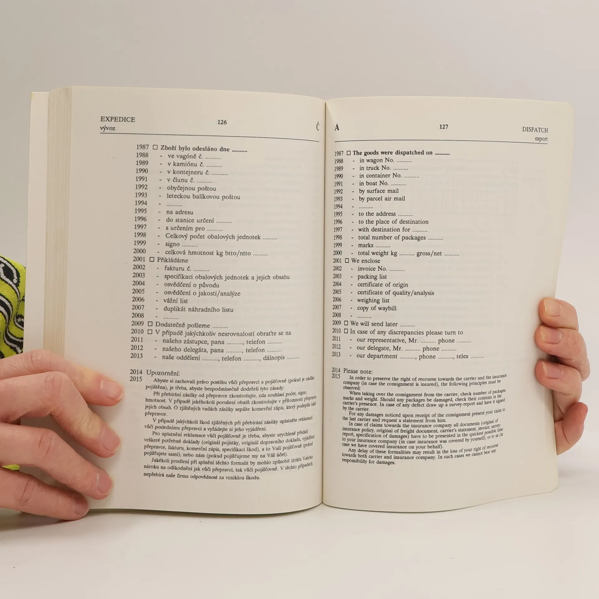 - 393 vzorových dopisů, zpráv a faxů v obou jazycích - 2500 modulů pro přípravu dopisů, faxů a mailových zpráv - návody jak správně komunikovat ve všech fázích obchodování - příklady a varianty věcného řešení obchodních situací - co, kdy a jakou formou odpovědět a navrhnout Vašemu partnerovi - odborná pomoc renomovaných autorů, moderní forma a soudobý jazyk pomohou dovést Vaše obchodní aktivity (a to nejen se zahraničním partnerem) k úspěenému završení.