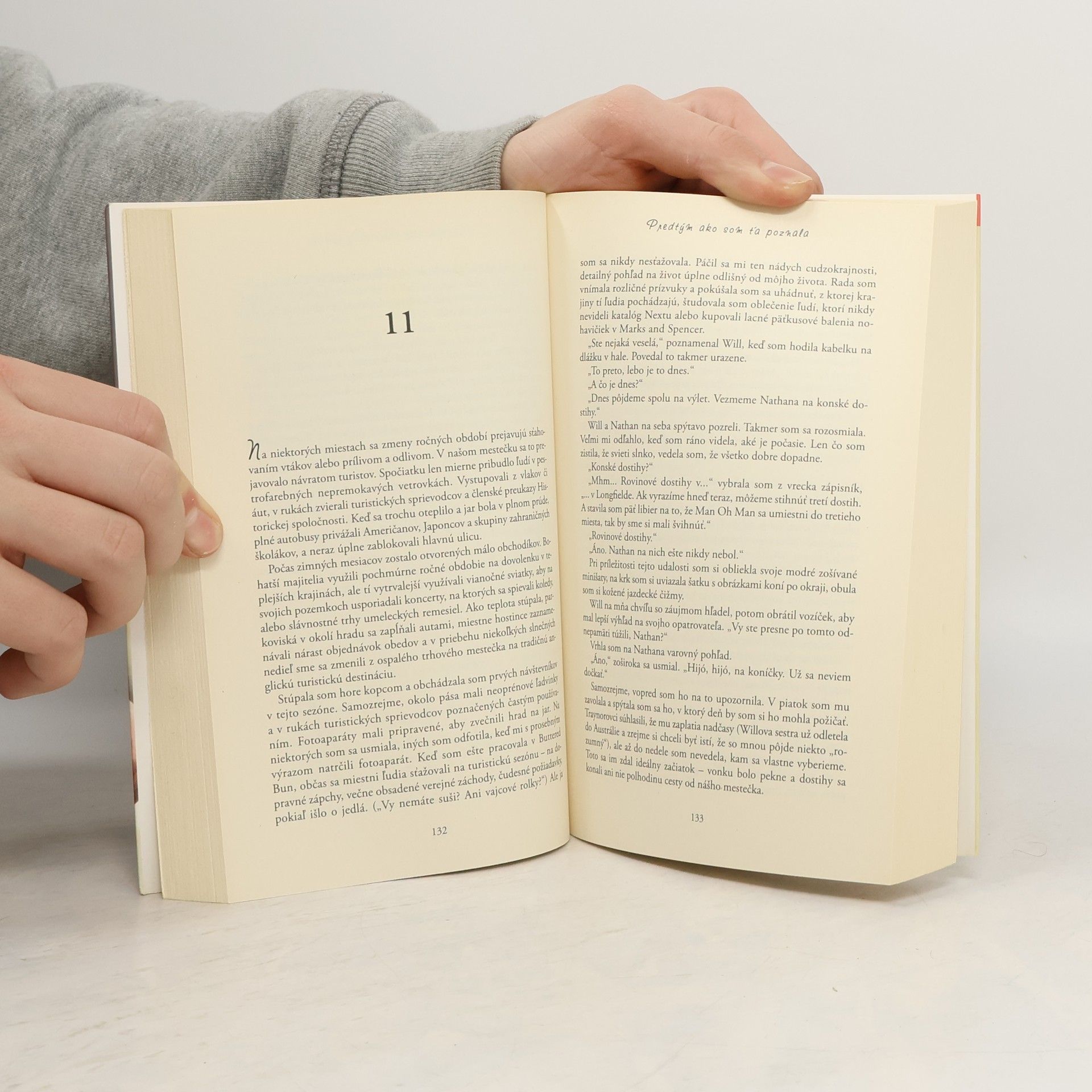 Lou Clarková vie všeličo. Vie, že jej otec si ťažko hľadá prácu, vie, koľko krokov treba prejsť od autobusovej zastávky k rodičovskému domu. Vie, že sa jej páči práca v bistre, a vie, že možno neľúbi svojho priateľa Patricka, oduševneného športovca. Zato nevie nič o klasickej hudbe, nevie, že príde o miesto, a keby tušila, čo ju čaká, asi by prišla o rozum. Will Traynor vie, že po dopravnej nehode stratil chuť do života. Vie, čím bol kedysi, vie, že všetko sa mu teraz zdá malé a neradostné, a veľmi presne vie, ako s tým skoncovať. Zato nevie, že Lou mu vtrhne do života ako farebná búrka. A ani jeden z nich nevie, že jeden druhého navzájom navždy zmenia. Román Predtým ako som ťa poznala má aj voľné pokračovanie. O ďalšom osude hlavných hrdinov autorka napísala knihu s názvom Čo bolo potom.