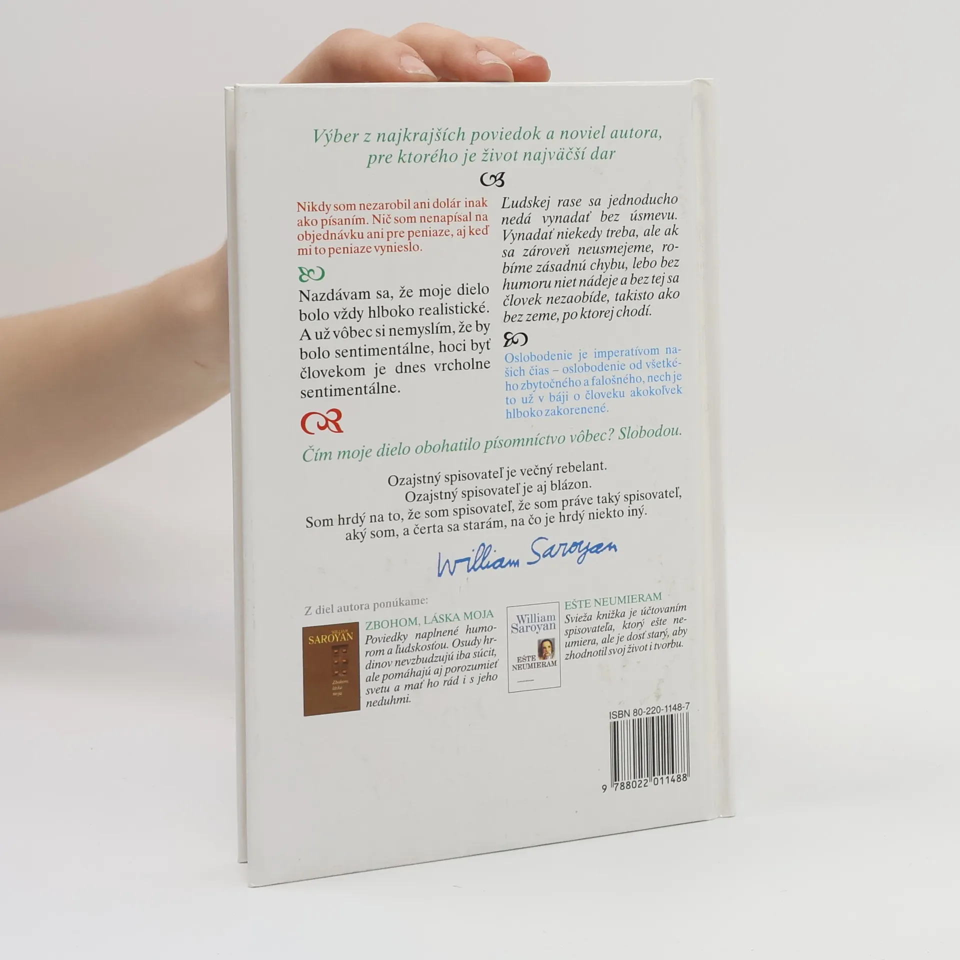 Výber z najkrajších poviedok a noviel autora, pre ktorého je život najväčší dar. Vybrané a preložené z anglických originálov “My Name is Aram”, “Best Stories of William Saroyan”, “Little Children”, “The Man With the Heart in the Highlands and Other Stories”, “The Saroyan Special” a “Tracy's Tiger”.
