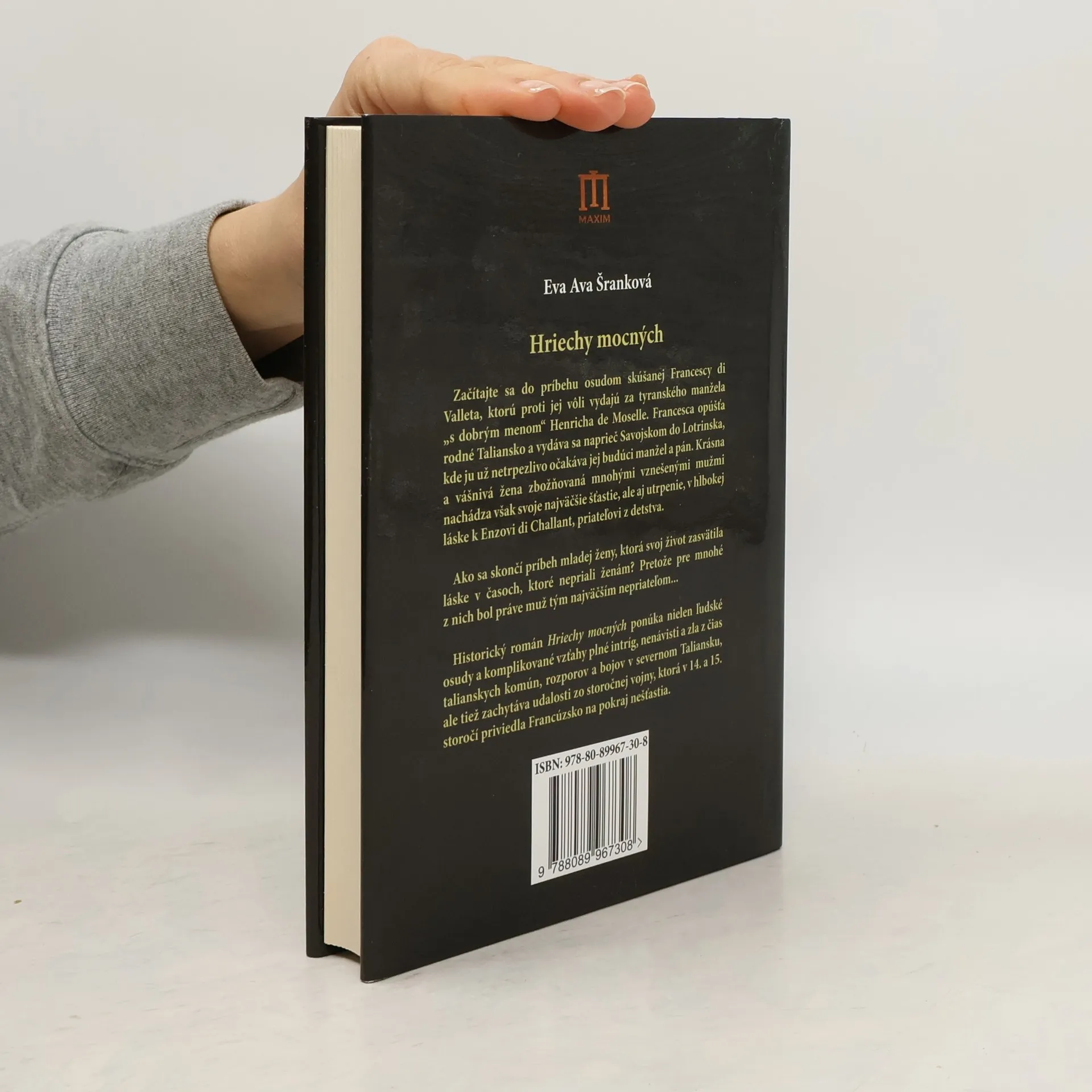 Začítajte sa do príbehu osudom skúšanej Francescy di Valleta, ktorú proti jej vôli vydajú za tyranského manžela "s dobrým menom" Henricha de Moselle. Francesca opúšťa rodné Taliansko a vydáva sa naprieč Savojskom do Lotrinska, kde ju už netrpezlivo očakáva jej budúci manžel a pán. Krásna a vášnivá žena zbožňovaná mnohými vznešenými mužmi nachádza však svoje najväčšie šťastie, ale aj utrpenie, v hlbokej láske k Enzovi di Challant, priateľovi z detstva. Ako sa skončí príbeh mladej ženy, ktorá svoj život zasvätila láske v časoch, ktoré nepriali ženám? Pretože pre mnohé z nich bol práve muž tým najväčším nepriateľom... Historický román Hriechy mocných ponúka nielen ľudské osudy a komplikované vzťahy plné intríg, nenávisti a zla z čias talianskych komún, rozporov a bojov v severnom Taliansku, ale tiež zachytáva udalosti zo storočnej vojny, ktorá v 14. a 15. storočí priviedla Francúzsko na pokraj nešťastia.