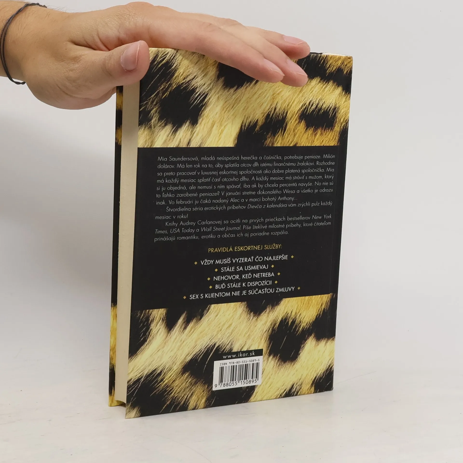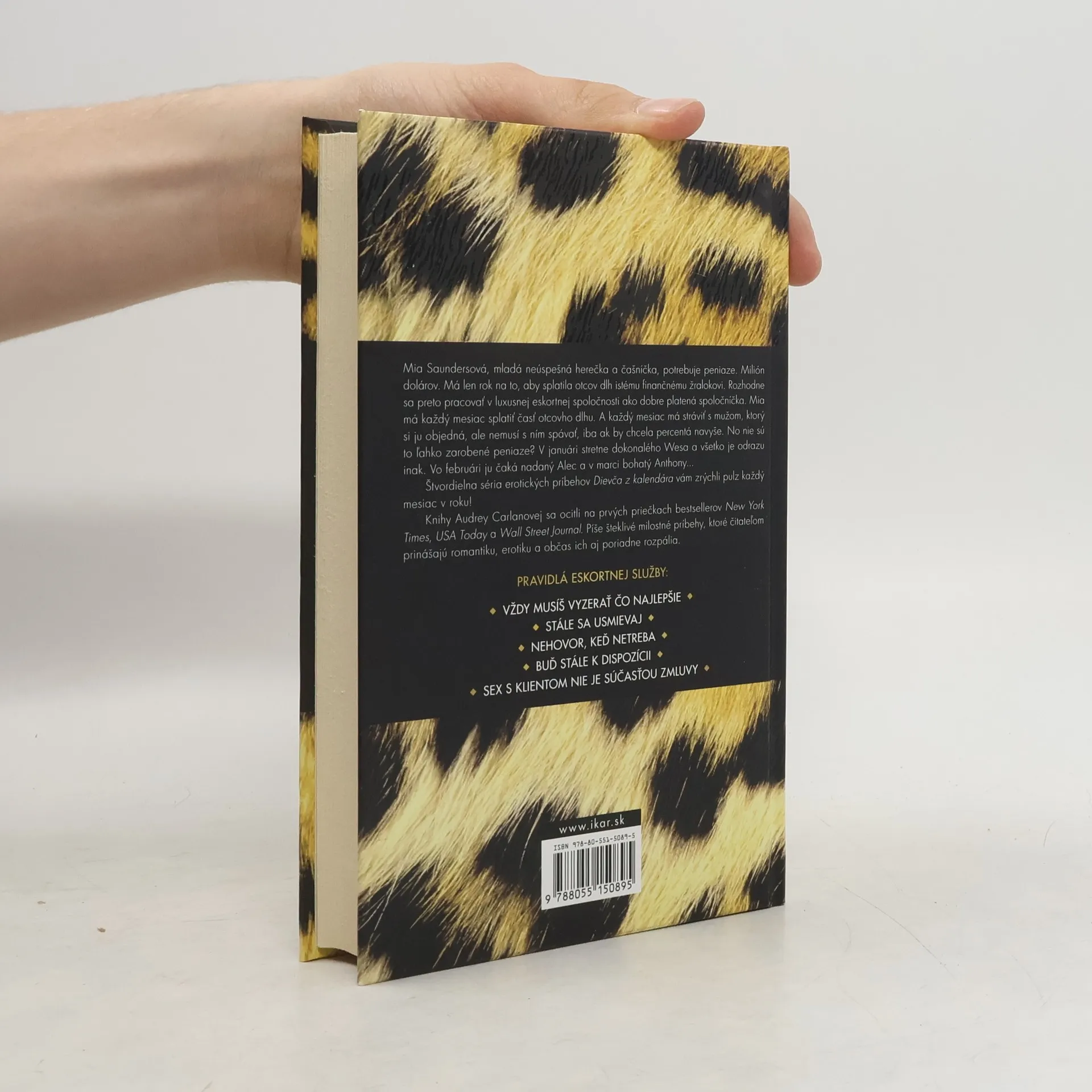 Mia Saundersová, mladá neúspešná herečka a čašníčka, potrebuje peniaze. Milión dolárov. Má len rok na to, aby splatila otcov dlh istému finančnému žralokovi. Rozhodne sa preto pracovať v luxusnej eskortnej spoločnosti ako dobre platená spoločníčka. Mia má každý mesiac splatiť časť otcovho dlhu. A každý mesiac má stráviť s mužom, ktorý si ju objedná, ale nemusí s ním spávať, iba ak by chcela percentá navyše. No nie sú to ľahko zarobené peniaze? V januári stretne dokonalého Wesa a všetko je odrazu inak. Vo februári ju čaká nadaný Alec a v marci bohatý Anthony...