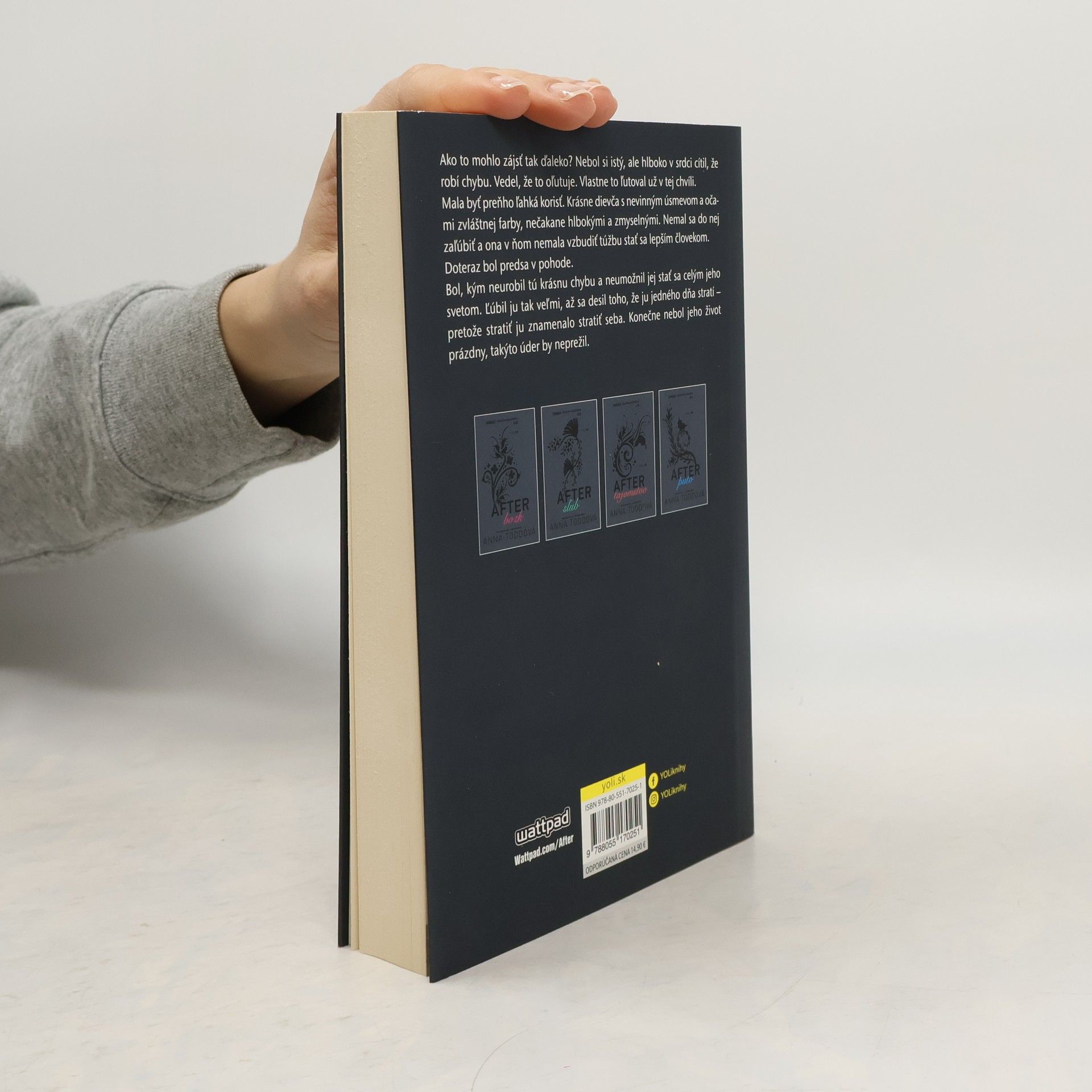 Nevinná kráska a potetovaný búrlivák. Tessa a Hardin. Ich vzťah bol viac ako turbulentný. Spočiatku šlo o hru, no postupne sa Tessa stala celým Hardinovým svetom a oboch ich prevalcovala skutočná, nespútaná láska. Pripomínala smršť, ktorá so sebou strhávala všetkých naokolo. Hardin balansoval na hrane krutosti, Tessa trpela. Lenže správanie človeka pochopíme až vtedy, keď zistíme, čo mu predchádzalo. Zrazu sa všetko javí inak. A Hardin je toho dôkazom. Naozaj sa ich vzťah nemohol zaobísť bez sĺz? Posledný diel série After odkrýva, čo sa udialo predtým, ako Hardin stretol Tessu, ale aj čo sa odohralo potom. Úplne zmení váš pohľad na hĺbavého chlapca aj anjela, ktorý sa doňho zamiloval, a na ich divokú #hessa romancu. Fanfikcia Anny Toddovej dosiahla miliardu prečítaní na internete a očarila čitateľov po celom svete! Stala sa svetovou senzáciou. Prvý diel sa už právom dočkal filmového spracovania a usilovne sa pracuje na druhom.