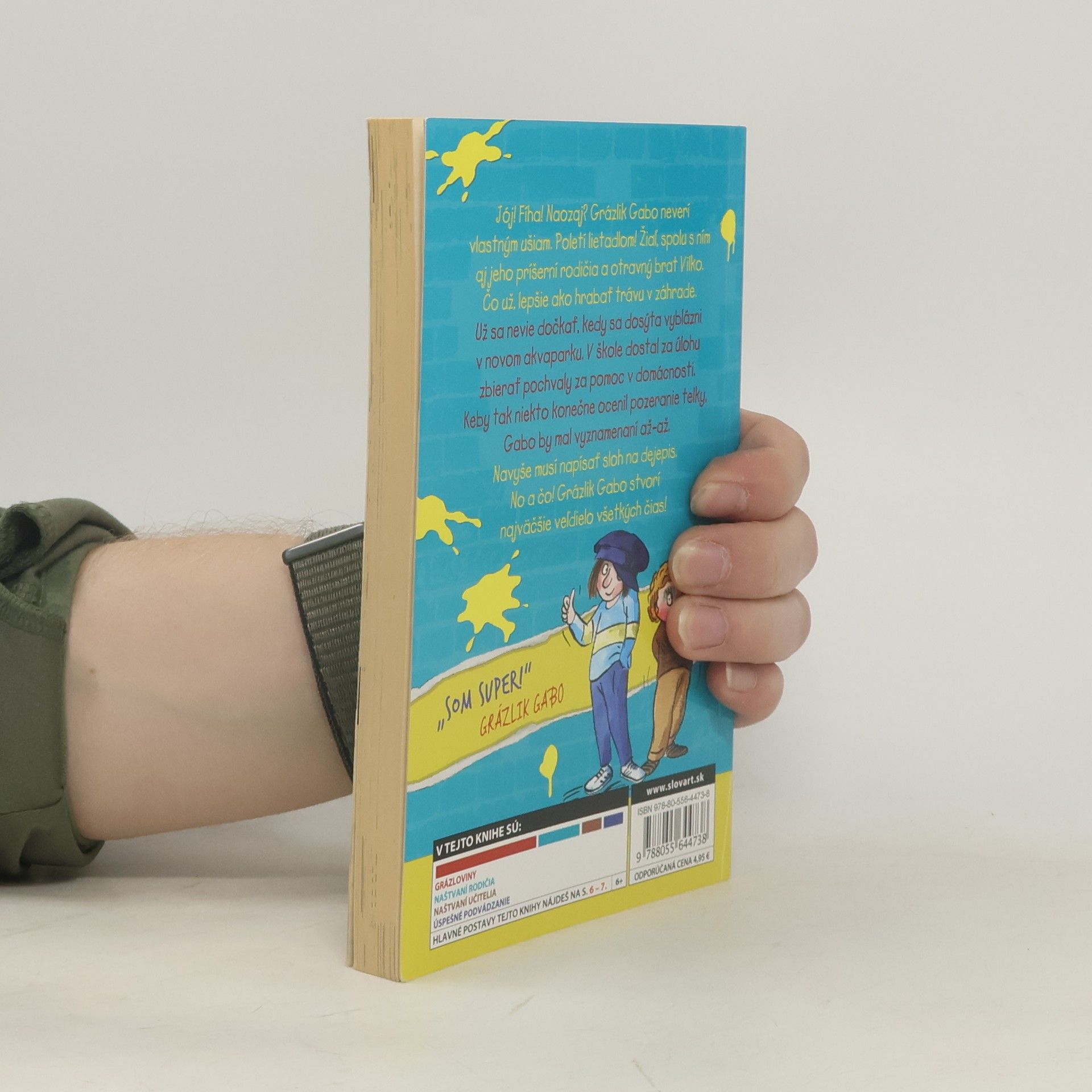 V poslednom pokračovaní príbehov najslávnejšieho grázlika na svete Gabo neverí vlastným ušiam. Poletí lietadlom! Žiaľ, spolu s ním aj jeho príšerní rodičia a otravný brat Vilko. Čo už, vždy lepšie ako hrabať trávu v záhrade. Už sa nevie dočkať, kedy sa dosýta vyblázni v novom akvaparku. V škole dostal za úlohu zbierať pochvaly za pomoc v domácnosti. Keby niekto konečne ocenil pozeranie na telku, mal by vyznamenaní až-až. Navyše musí napísať sloh na hodinu dejepisu. Grázlik Gabo však znova vymyslí niečo, čo ste ešte nevideli! Veď sa len začítajte!