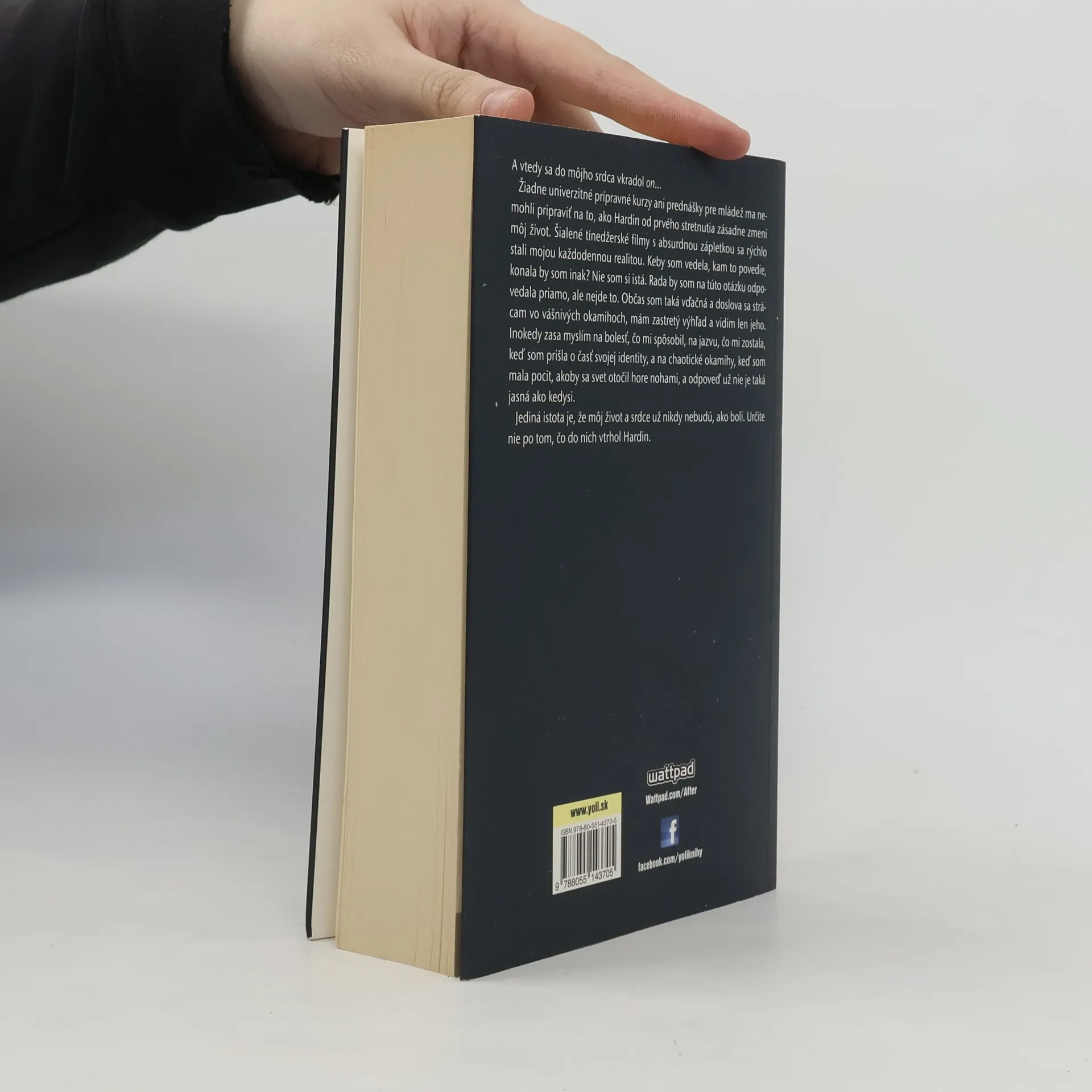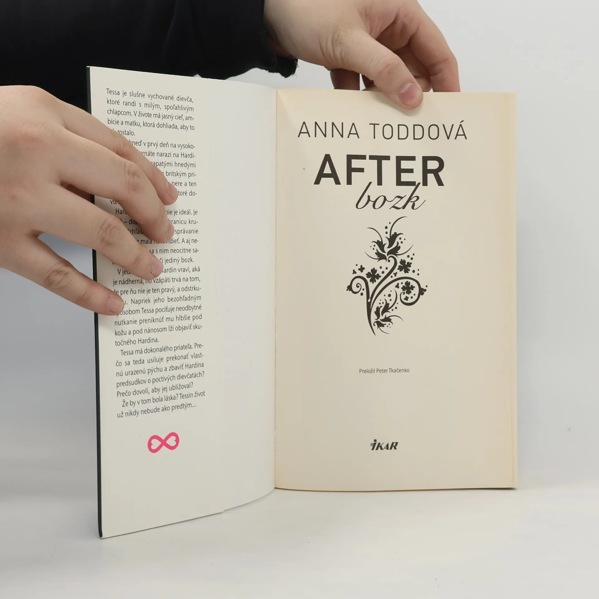 Sú bozky, ktoré navždy zmenia váš život Tessa je slušne vychované dievča, ktoré randí s milým, spoľahlivým chlapcom. V živote má jasný cieľ, ambície a matku, ktorá dohliada, aby to tak zostalo. Lenže hneď v prvý deň na vysokoškolskom internáte narazí na Hardina, chalana so strapatými hnedými vlasmi, sebavedomým britským prízvukom a s pírsingom v pere a ten jej nabúra všetky ideály, v ktoré dovtedy verila. Hardin však zďaleka nie je ideál. Je drzý – dokonca až po hranicu krutosti. Vzhľadom na jeho správanie by ho Tessa mala nenávidieť. A aj nenávidí, až kým sa s ním neocitne sama v jeho izbe. Stačí jediný bozk. V jednej chvíli jej Hardin vraví, aká je nádherná, no vzápätí trvá na tom, že pre ňu nie je ten pravý a odstrkuje ju. Napriek svojim bezohľadným spôsobom Tessa pociťuje neodbytné nutkanie preniknúť mu hlbšie pod kožu a pod nánosom lží objaviť skutočného Hardina. Tessa má dokonalého priateľa. Prečo sa teda usiluje prekonať vlastnú urazenú pýchu a zbaviť Hardina predsudkov o poctivých dievčatách? Prečo dovolí, aby jej ubližoval? Žeby v tom bola láska? Tessin život už nikdy nebude taký ako predtým...