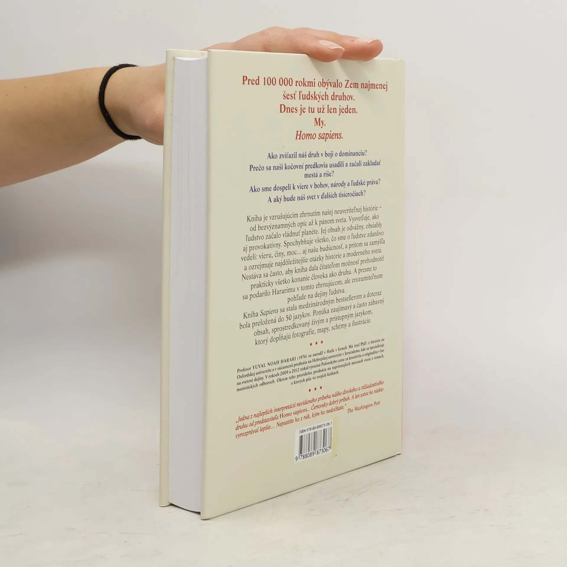 Pred 100 000 rokmi žilo na Zemi najmenej šesť ľudských druhov, dnes je tu len Homo sapiens. Autor, Dr. Yuval Noah Harari, známy vizionársky historik, skúma históriu človeka od jeho počiatkov až po súčasnosť, pričom sa zameriava na tri kľúčové revolúcie: kognitívnu, poľnohospodársku a vedeckú. Kniha sa pýta, ako sme sa stali dominantným druhom, prečo sa naši predkovia usadili a začali budovať mestá a ríše, a aký vplyv má na nás viera v bohov, národy či ľudské práva. Harari čerpá z rôznych disciplín, ako sú história, biológia a ekonómia, aby preskúmal, ako formovali naše spoločnosti a vzťahy s prírodou. Klade otázky o našej šťastnej existencii, o tom, či môžeme oslobodiť naše správanie od dedičstva predkov, a čo môžeme urobiť pre ovplyvnenie budúcnosti. Kniha provokuje zamyslenie nad našou históriou a budúcnosťou, pričom skúma vplyv ľudského správania a vedeckého pokroku na zákony prírody. Tento vzrušujúci prehľad našej histórie, od bezvýznamných opíc po pánov sveta, spochybňuje naše presvedčenia a činy. Harari ponúka čitateľom možnosť prehodnotiť všetko, čo sme o ľudstve vedeli. Kniha sa stala medzinárodným bestsellerom, je písaná živým jazykom a doplnená o fotografie, mapy a ilustrácie, čo zvyšuje jej atraktivitu.