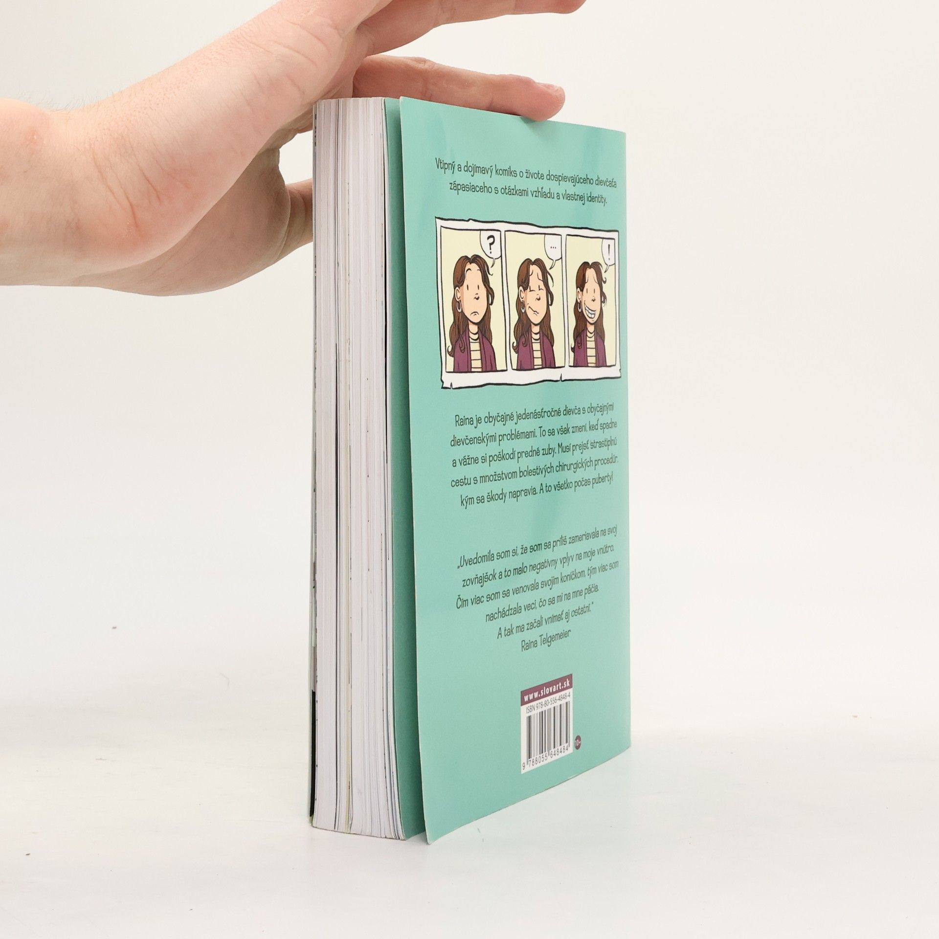 Rodina, priatelia, chalani a... dráma so zubami?! Úspešný komiks podľa skutočnej udalosti Raina je obyčajné jedenásťročné dievča s obyčajnými dievčenskými problémami. To sa však zmení, keď spadne a vážne si poškodí predné zuby. Musí prejsť strastiplnú cestu s množstvo bolestivých chirurgických procedúr, kým sa škody napravia. A to všetko počas puberty! Vtipný a dojímavý príbeh dospievajúceho dievčaťa, zápasiaceho s otázkami vzhľadu a vlastnej identity.