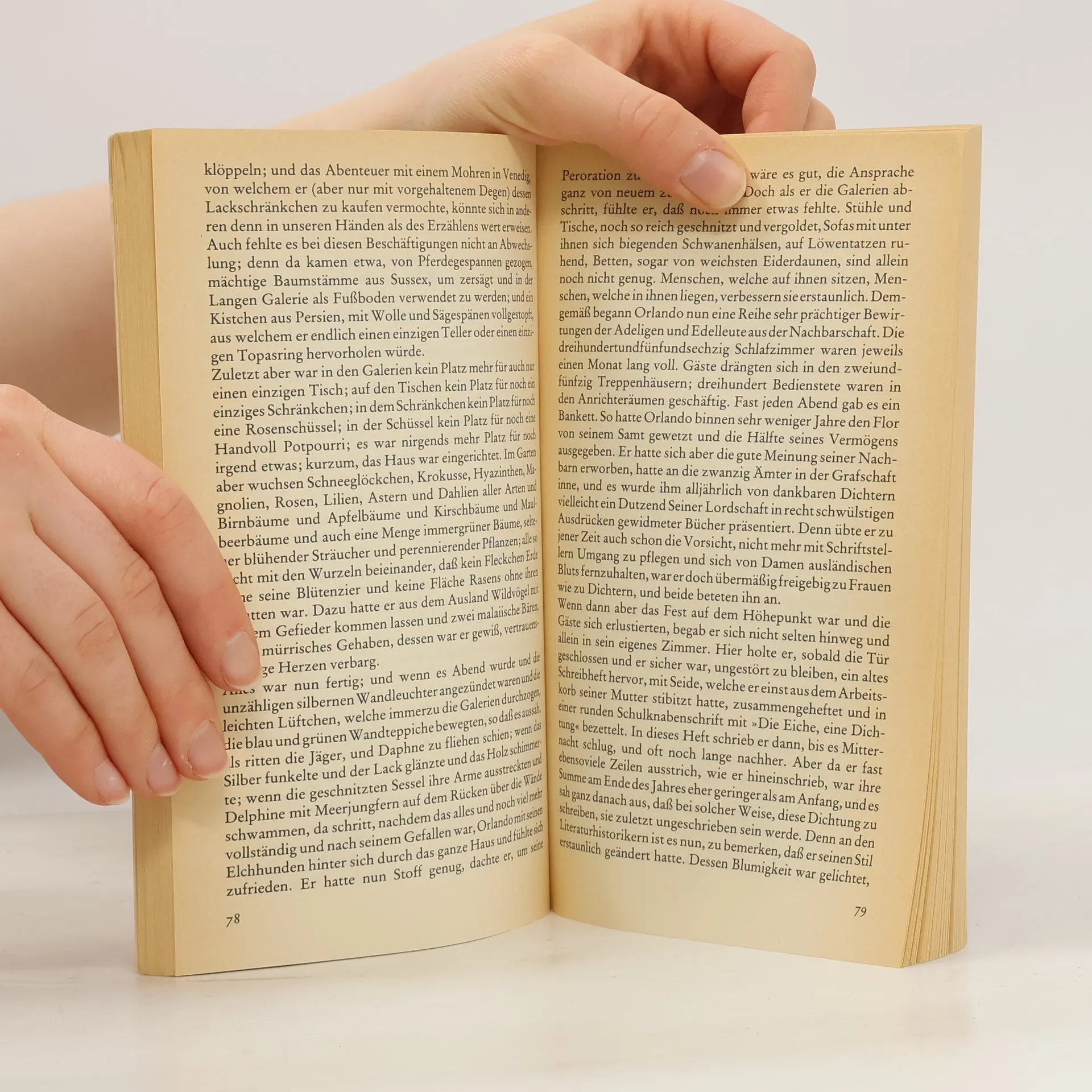 Dieses 1928 erschienene Werk beschrieb Virginia Woolf bewußt als »eine Biographie, die im Jahr 1500 beginnt und bis zum heutigen Tag führt«. Es ist eine Huldigung an ihre Freundin, die Schriftstellerin Victoria Sackville-West, von Virginia Woolf zärtlich Vita genannt. Im September 1927 schrieb Virginia in ihr Tagebuch: »Eines Tages jedoch werde ich hier die Umrisse all meiner Freunde skizzieren wie ein großes historisches Gemälde. (...) Vita sollte Orlando sein, ein junger Adeliger.«In die Neuausgabe wurden erstmals seit der englischen Erstausgabe die acht Abbildungen aufgenommen, die Virginia Woolf zur Illustration der Reise Orlandos durch die Zeit für den Roman ausgewählt hatte. Bei der neuen Übersetzung ging es vor allem darum, die Vielzahl der versteckten Zitate, die stilistischen Parodien und den »essayartigen« Charakter des Textes im Deutschen nachzuempfinden. In einem Anhang erläutert der Herausgeber die literarischen Quellen und auch die Bezüge zu Vita Sackville-West und deren Familiensitz Knole.