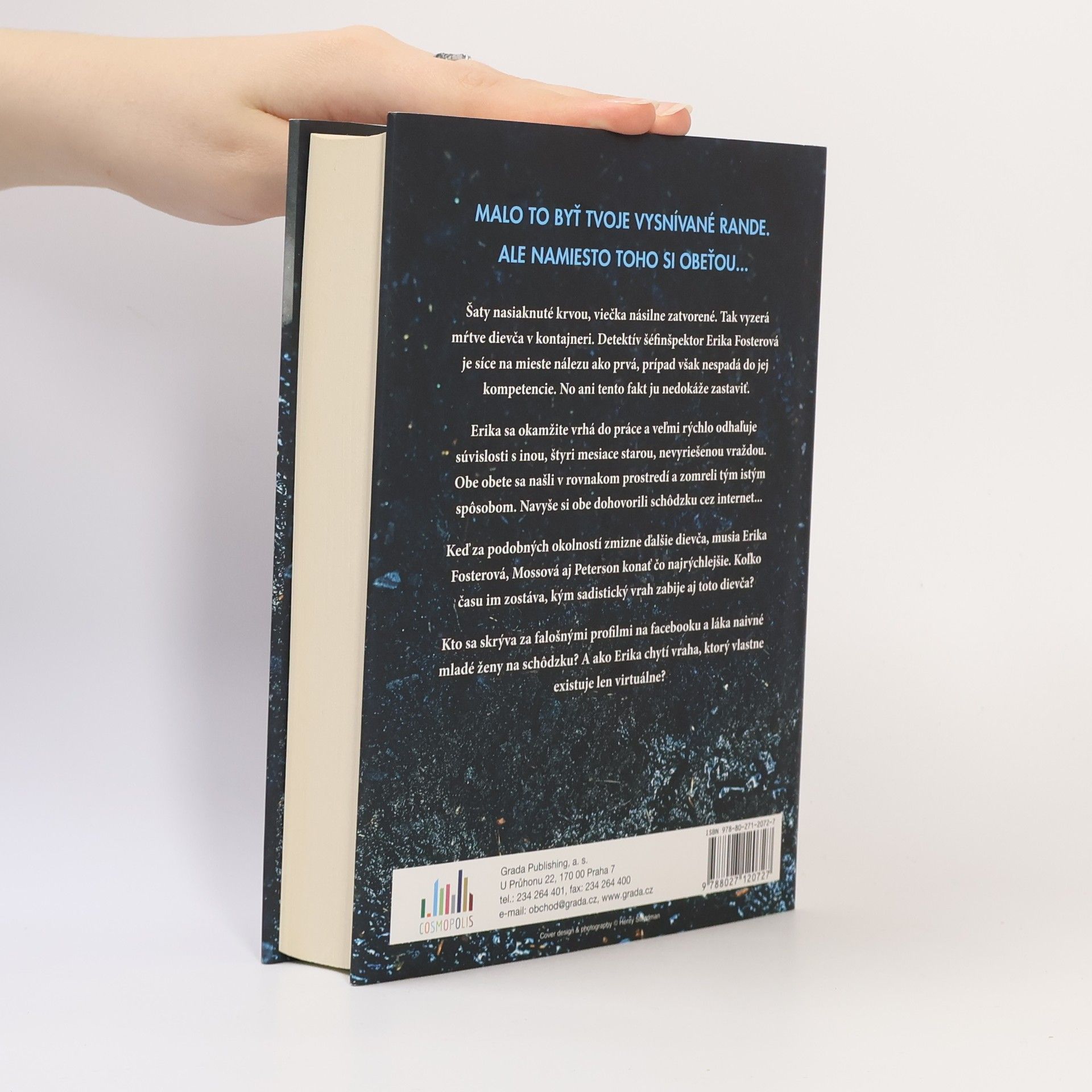 Šaty nasiaknuté krvou, viečka násilne zatvorené. Tak vyzerá mŕtve dievča v kontajneri. Detektív séfinšpektor Erika Fosterová je síce na mieste nálezu ako prvá, prípad však nespadá do jej kompetencie. No ani tento fakt ju nedokáže zastaviť. Erika sa okamžite vrhá do práce a veľmi rýchlo odhaľuje súvislosti s inou, štyri mesiace starou, nevyriešenou vraždou. Obe obete sa našli v rovnakom prostredí a zomreli tým istým spôsobom. Navyše si obe dohovorili schôdzku cez internet... Keď za podobných okolností zmizne ďalšie dievča, musia Erika Fosterová, Mossová aj Peterson konať čo najrýchlejšie. Koľko času im zostáva, kým sadistický vraj zabije aj toto dievča? Kto sa skrýva za falošnými profilmi na facebooku a láka naivné mladé ženy na schôdzku? A ako Erika chytí vraha, ktorý vlastne existuje len virtuálne?