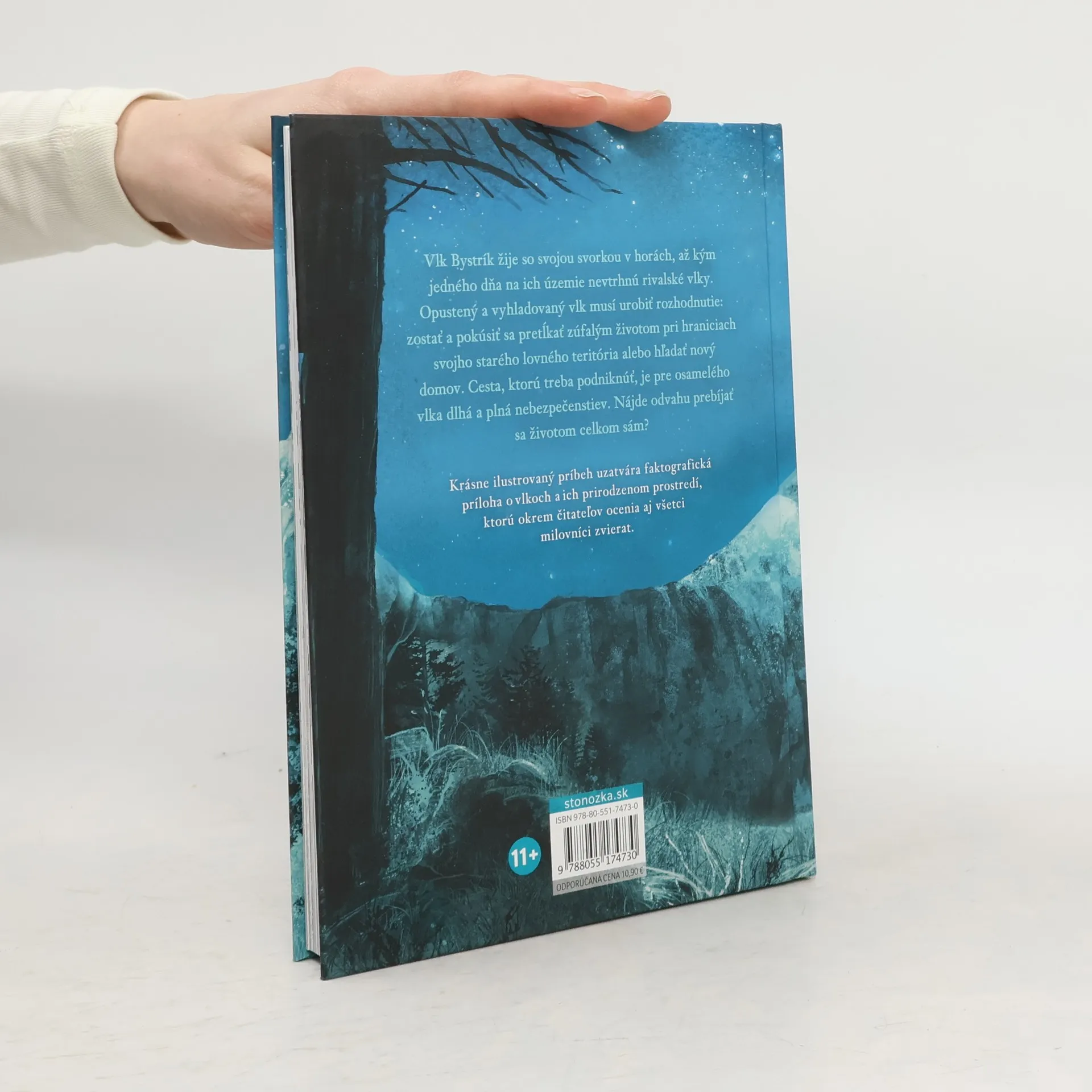 Silný príbeh o rodine, odvahe a prežití inšpirovaný skutočnými udalosťami Vlk Bystrík žije so svojou svorkou v horách, až kým jedného dňa na ich územie nevtrhnú rivalské vlky. Opustený a vyhladovaný vlk musí urobiť rozhodnutie: zostať a pokúsiť sa pretĺkať zúfalým životom na hraniciach svojho starého lovného teritória alebo hľadať nový domov. Cesta, ktorú treba podniknúť, je pre osamelého vlka dlhá a plná nebezpečenstiev. Nájde odvahu prebíjať sa životom celkom sám? Krásne ilustrovaný príbeh uzatvára faktografická príloha o vlkoch a ich prirodzenom prostredí, ktorú okrem čitateľov ocenia aj všetci milovníci zvierat.