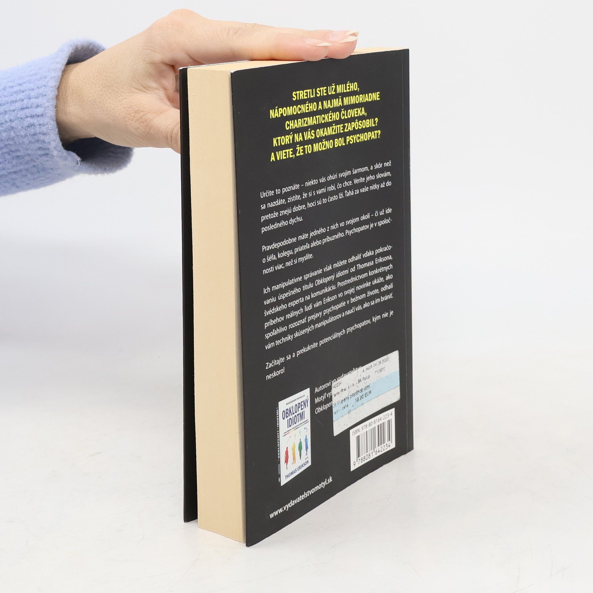 Stretli ste už milého, nápomocného a najmä mimoriadne charizmatického človeka, ktorý na vás okamžite zapôsobil? A viete, že to možno bol psychopat? Určite to poznáte - niekto vás ohúri svojím šarmom, a skôr než sa nazdáte, zistíte, že si s vami robí, čo chce. Veríte jeho slovám, pretože znejú dobre, hoci sú to často lži. Ťahá za vaše nitky až do posledného dychu. Pravdepodobne máte jedného z nich vo svojom okolí - či už ide o šéfa, kolegu, priateľa alebo príbuzného. Psychopatov je v spoločnosti viac, než si myslíte. Ich manipulatívne správanie však môžete odhaliť vďaka pokračovaniu úspešného titulu Obklopený idiotmi od Thomasa Eriksona, švédskeho experta na komunikáciu. Prostredníctvom konkrétnych príbehov reálnych ľudí vám Erikson vo svojej novinke ukáže, ako spoľahlivo rozoznať prejavy psychopatie v bežnom živote, odhalí vám techniky skúsených manipulátorov a naučí vás, ako sa im brániť. Začítajte sa a prekuknite potenciálnych psychopatov, kým nie je neskoro!