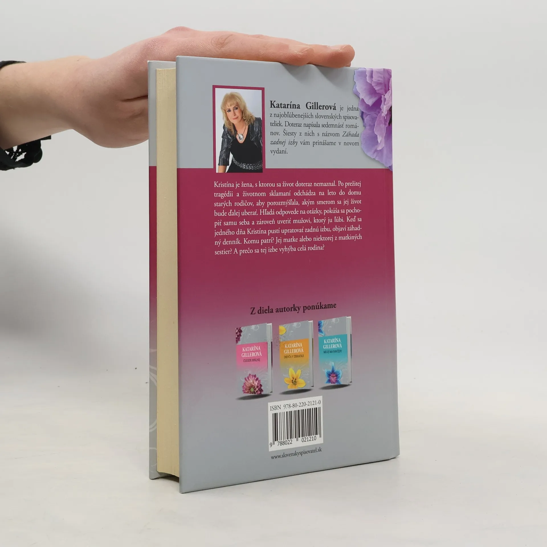Katarína Gillerová je jedna z najobľúbenejších slovenských spisovateliek. Doteraz napísala sedemnásť románov. Šiesty z nich s názvom Záhada zadnej izby vám prinášame v novom vydaní. Kristína je žena, s ktorou sa život doteraz nemaznal. Po prežitej tragédii a životnom sklamaní odchádza na leto do domu starých rodičov, aby porozmýšľala, akým smerom sa jej život bude ďalej uberať. Hľadá odpovede na otázky, pokúša sa pochopiť samu seba a zároveň uveriť mužovi, ktorý ju ľúbi. Keď sa jedného dňa Kristína pustí upratovať zadnú izbu, objaví záhadný denník. Komu patrí? Jej matke alebo niektorej z matkiných sestier? A prečo sa tej izbe vyhýba celá rodina?