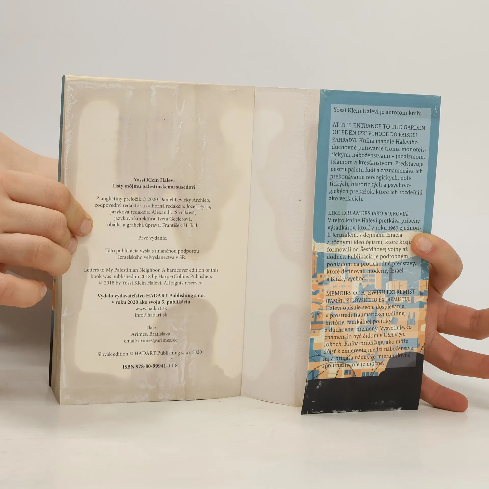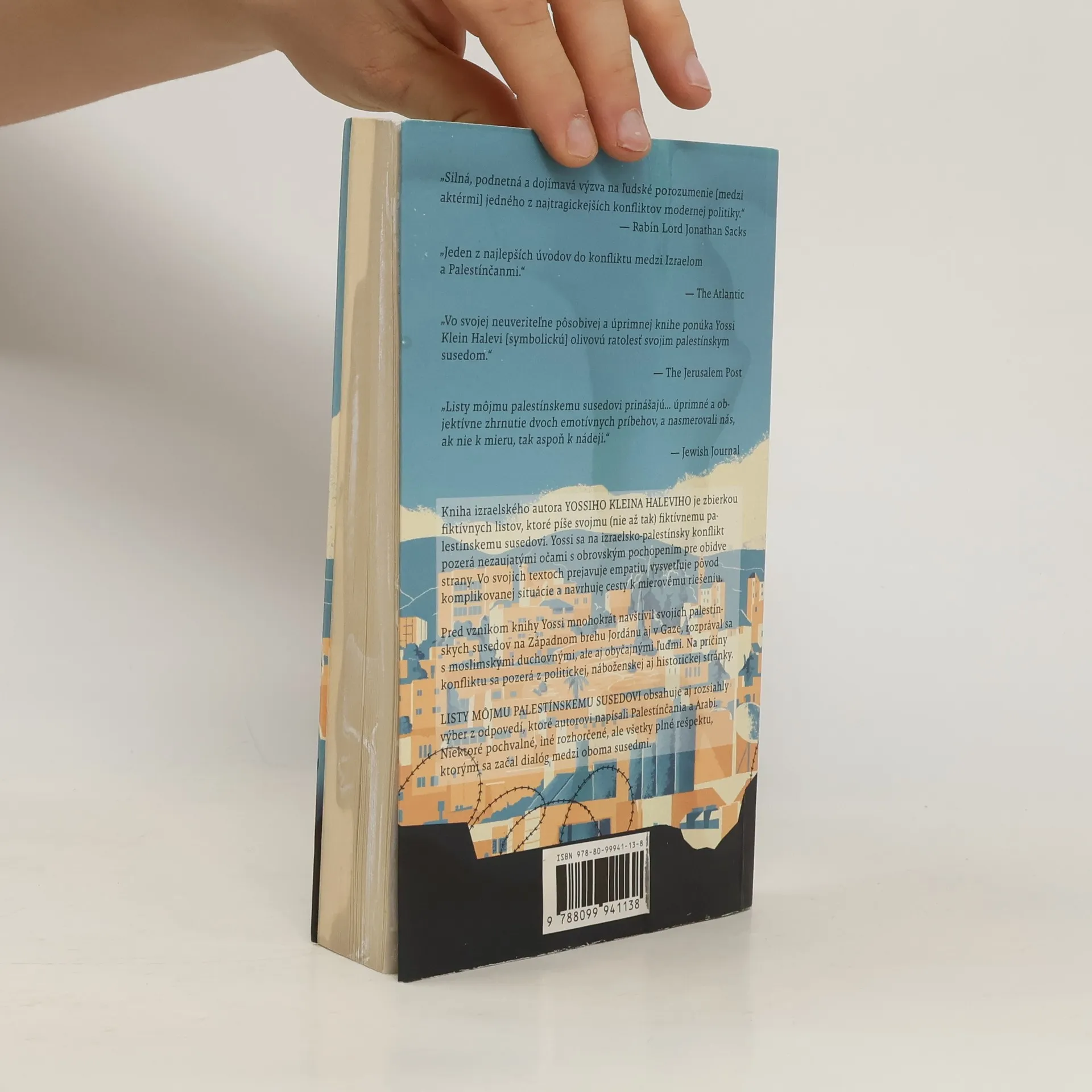 Kniha izraelského autora YOSSIHO KLEINA HALEVIHO je zbierkou fiktívnych listov, ktoré píše svojmu (nie až tak) fiktívnemu palestínskemu susedovi. Yossi sa na izraelsko-palestínsky konflikt pozerá nezaujatými očami s obrovským pochopením pre obidve strany. Vo svojich textoch prejavuje empatiu, vysvetľuje pôvod komplikovanej situácie a navrhuje cesty k mierovému riešeniu. Pred vznikom knihy Yossi mnohokrát navštívil svojich palestínskych susedov na Západnom brehu Jordánu aj v Gaze, rozprával sa s moslimskými duchovnými, ale aj obyčajnými ľuďmi. Na príčiny konfliktu sa pozerá z politickej, náboženskej aj historickej stránky. LISTY MÔJMU PALESTÍNSKEMU SUSEDOVI obsahuje aj rozsiahly výber z odpovedí, ktoré autorovi napísali Palestínčania a Arabi. Niektoré pochvalné, iné rozhorčené, ale všetky plné rešpektu, ktorými sa začal dialóg medzi oboma susedmi.