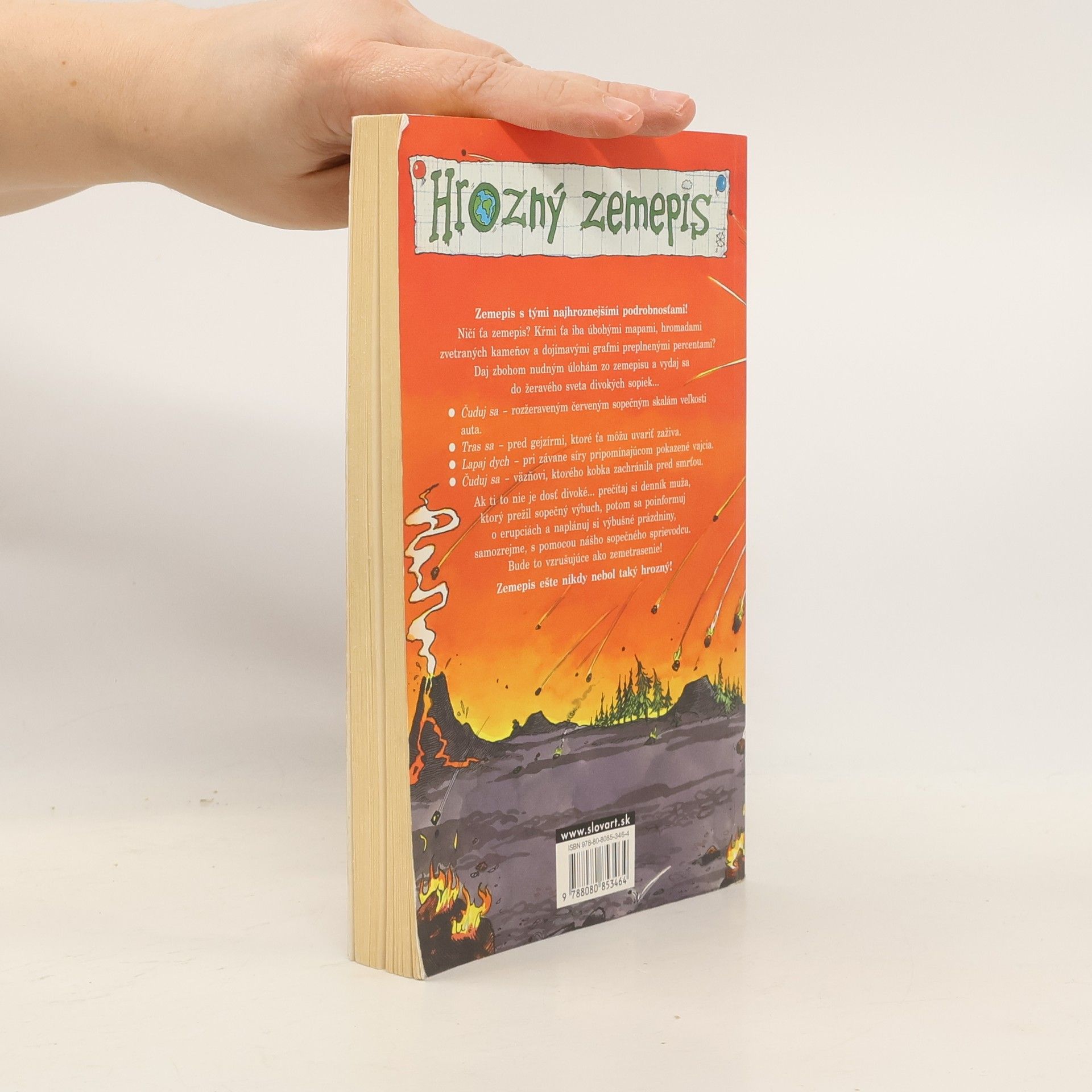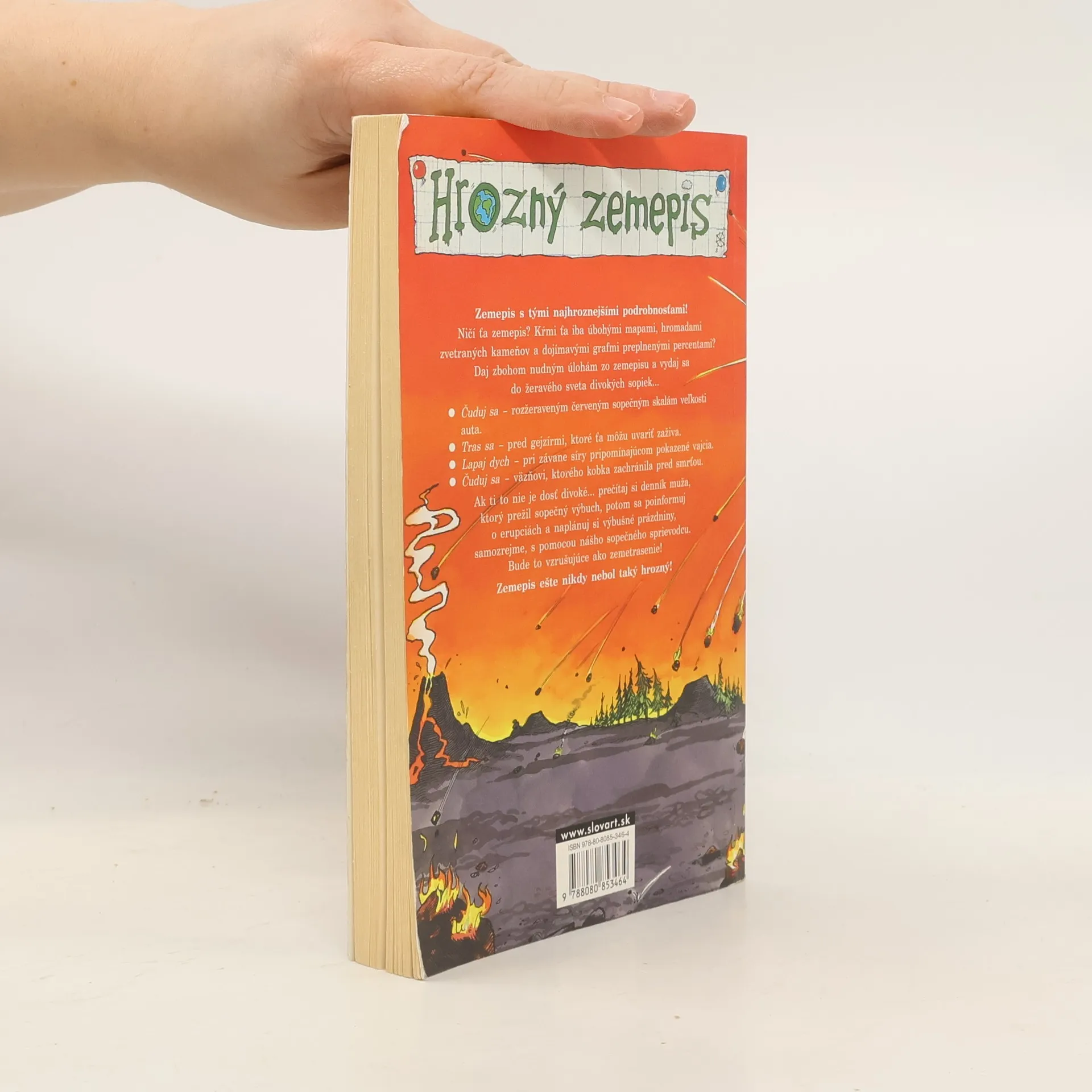 Zemepis nie sú iba slepé mapy a nudné údaje. Prečítajte si denníky ľudí, ktorí prežili výbuch sopky, naplánujte si vzrušujúce prázdniny so sprievodcom po svetových sopkách, zoznámte sa s dočervena rozpálenými lávovými kameňmi veľkými ako auto a zastavte sa pred horúcimi gejzírmi s vodou páchnucou ako pokazené vajcia. Ale nečudujte sa, ak sa pod vami zem občas trochu zatrasie. Kniha Divoké sopky predstaví popri Príšernej vede a Hrôzostrašnej histórií novú edíciu Hrozný zemepis.