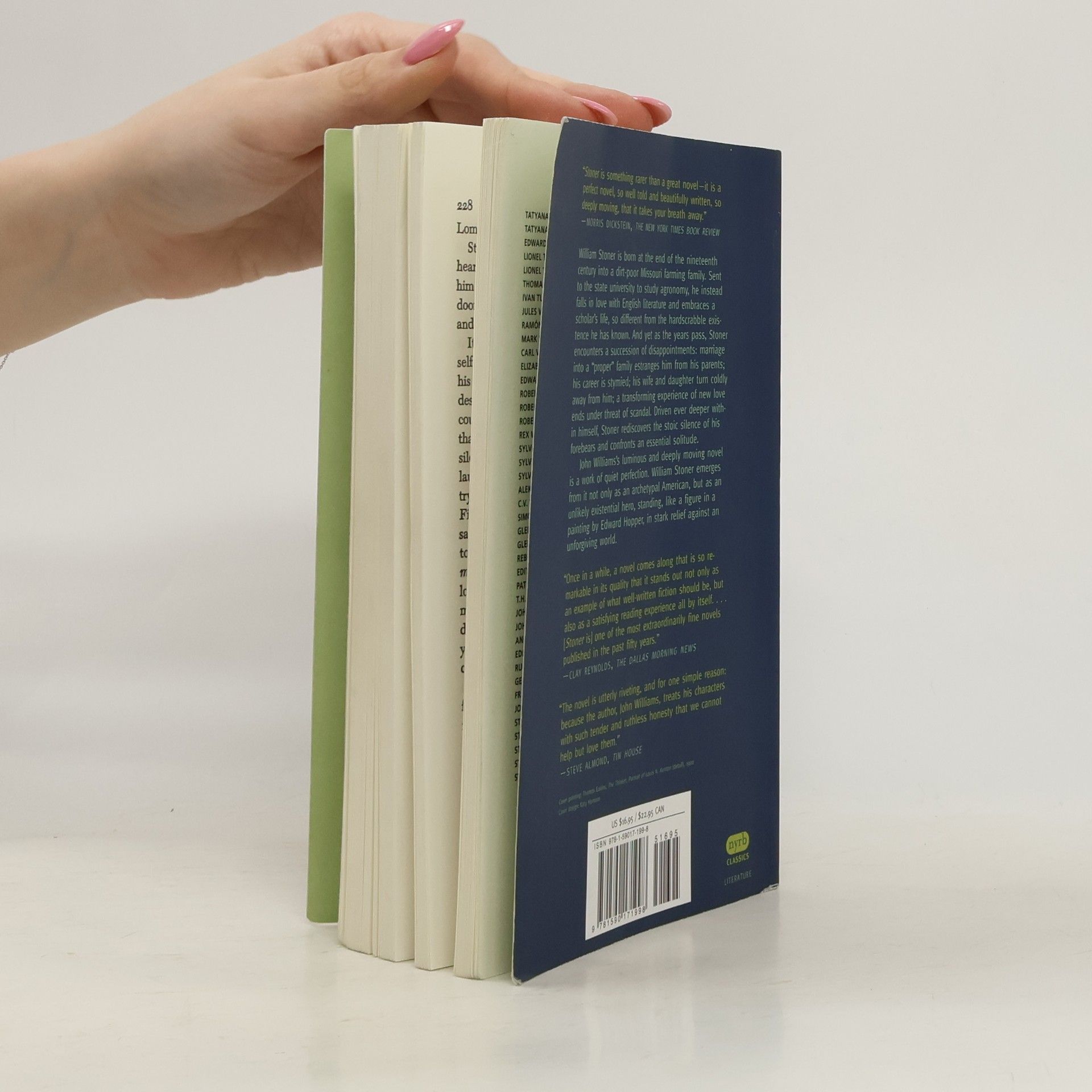 William Stoner is born at the end of the nineteenth century into a dirt-poor Missouri farming family. Sent to the state university to study agronomy, he instead falls in love with English literature and embraces a scholar’s life, so different from the hardscrabble existence he has known. And yet as the years pass, Stoner encounters a succession of disappointments: marriage into a “proper” family estranges him from his parents; his career is stymied; his wife and daughter turn coldly away from him; a transforming experience of new love ends under threat of scandal. Driven ever deeper within himself, Stoner rediscovers the stoic silence of his forebears and confronts an essential solitude.John Williams’s luminous and deeply moving novel is a work of quiet perfection. William Stoner emerges from it not only as an archetypal American, but as an unlikely existential hero, standing, like a figure in a painting by Edward Hopper, in stark relief against an unforgiving world.