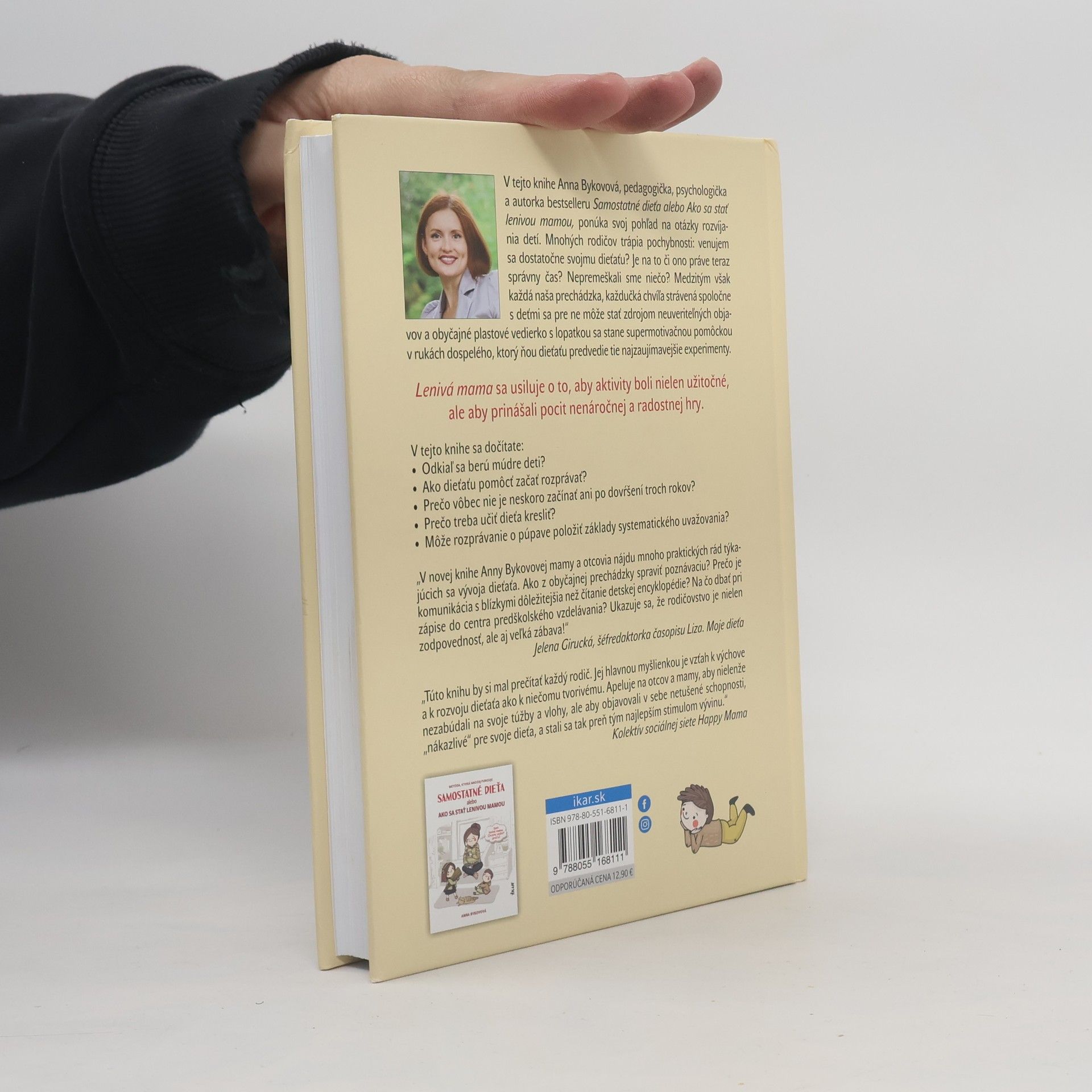 V tejto knihe Anna Bykovová, pedagogička, psychologička a autorka bestselleru Samostatné dieťa alebo Ako sa stať lenivou mamou, ponúka svoj pohľad na otázky rozvíjania detí. Mnohých rodičov trápia pochybnosti: venujem sa dostatočne svojmu dieťaťu? Je na to či ono práve teraz správny čas? Nepremeškali sme niečo? Medzitým však každá naša prechádzka, každučká chvíľa strávená spoločne s deťmi sa pre ne môže stať zdrojom neuveriteľných objavov a obyčajné plastové vedierko s lopatkou sa stane supermotivačnou pomôckou v rukách dospelého, ktorý ňou dieťaťu predvedie tie najzaujímavejšie experimenty. Lenivá mama sa usiluje o to, aby aktivity boli nielen užitočné, ale aby prinášali pocit nenáročnej a radostnej hry. V tejto knihe sa dočítate: Odkiaľ sa berú múdre deti? Ako dieťaťu pomôcť začať rozprávať? Prečo vôbec nie je neskoro začínať ani po dovŕšení troch rokov? Prečo treba učiť dieťa kresliť? Môže rozprávanie o púpave položiť základy systematického uvažovania?