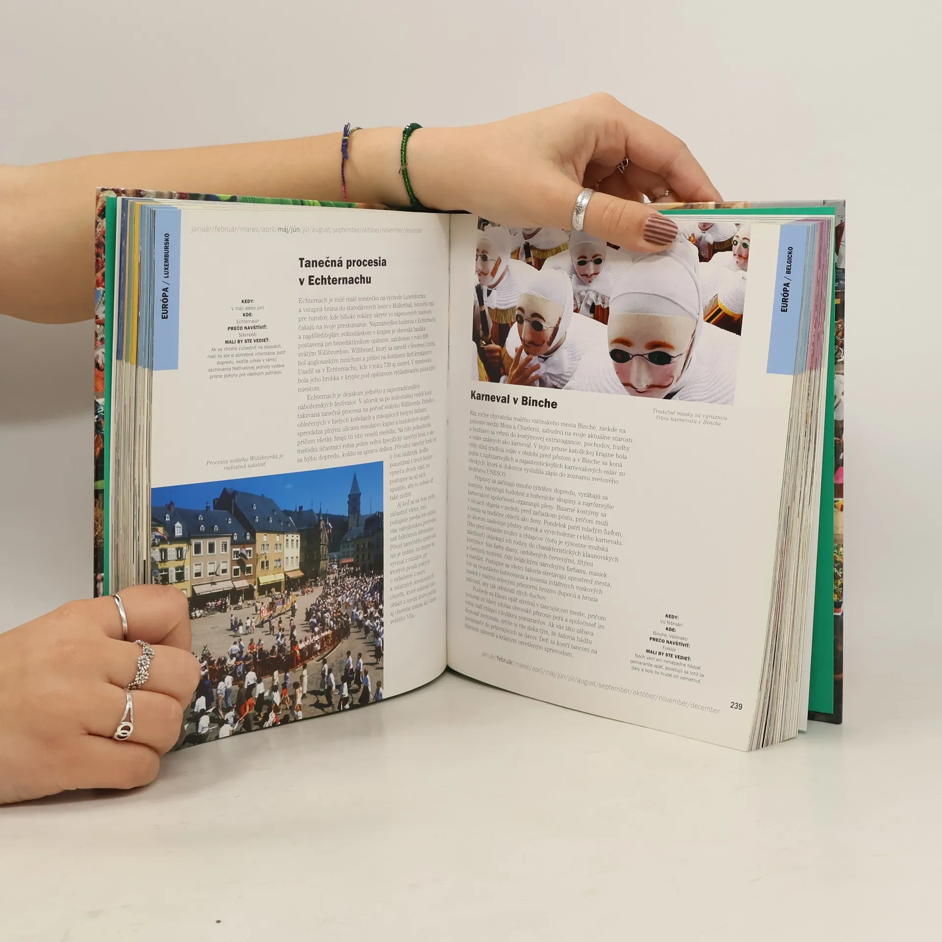 Táto publikácia patrí do kategórie kníh, ktoré treba mať v domácej knižnici. Prevedie vás karnevalmi, festivalmi a slávnosťami z celého sveta - od Európy, cez Afriku a Áziu až po Austráliu. Či už túžite ochutnať tie najlepšie morské plody, vypočuť si zaujímavé príbehy, zúčastniť sa na paradajkovej bitke, pozrieť si bábkové divadlo, počúvať džez alebo pretancovať dni a noci, z neuveriteľného množstva najrôznejších festivalov, karnevalov a slávností si určite vyberiete také, ktoré vás zaujmú.