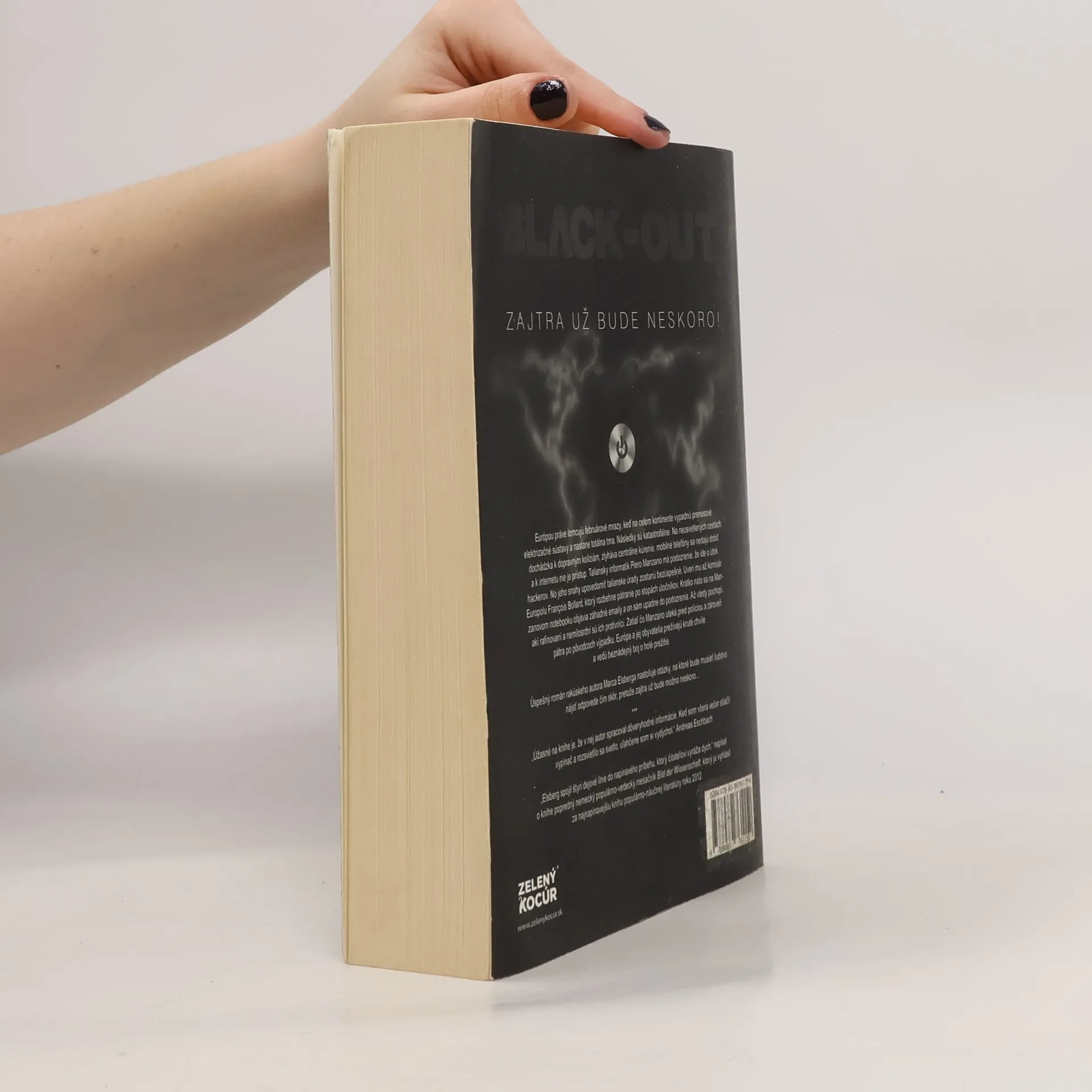 Zajtra už bude neskoro. Európou práve lomcujú februárové mrazy, keď na celom kontinente vypadnú prenosové elektrizačné sústavy a nastane totálna tma. Následky sú katastrofálne. Na neosvetlených cestách dochádzka k dopravným kolíziám, zlyháva centrálne kúrenie, mobilné telefóny sa nedajú dobiť a k internetu nie je prístup. Taliansky informatik Piero Manzano má podozrenie, že ide o útok hackerov. No jeho snahy upovedomiť talianske úrady zostanú bezúspešné. Uverí mu až komisár Europolu François Bollard, ktorý rozbehne pátranie po stopách útočníkov. Krátko nato sa na Manzanovom notebooku objavia záhadné emaily a on sám upadne do podozrenia. Až vtedy pochopí, akí rafinovaní a nemilosrdní sú ich protivníci. Zatiaľ čo Manzano uteká pred políciou a zároveň pátra po pôvodcoch výpadku, Európa a jej obyvatelia prežívajú kruté chvíle a vedú beznádejný boj o holé prežitie. Úspešný román rakúskeho autora Marca Elsberga nastoľuje otázky, na ktoré bude musieť ľudstvo nájsť odpovede čím skôr, pretože zajtra už bude možno neskoro...