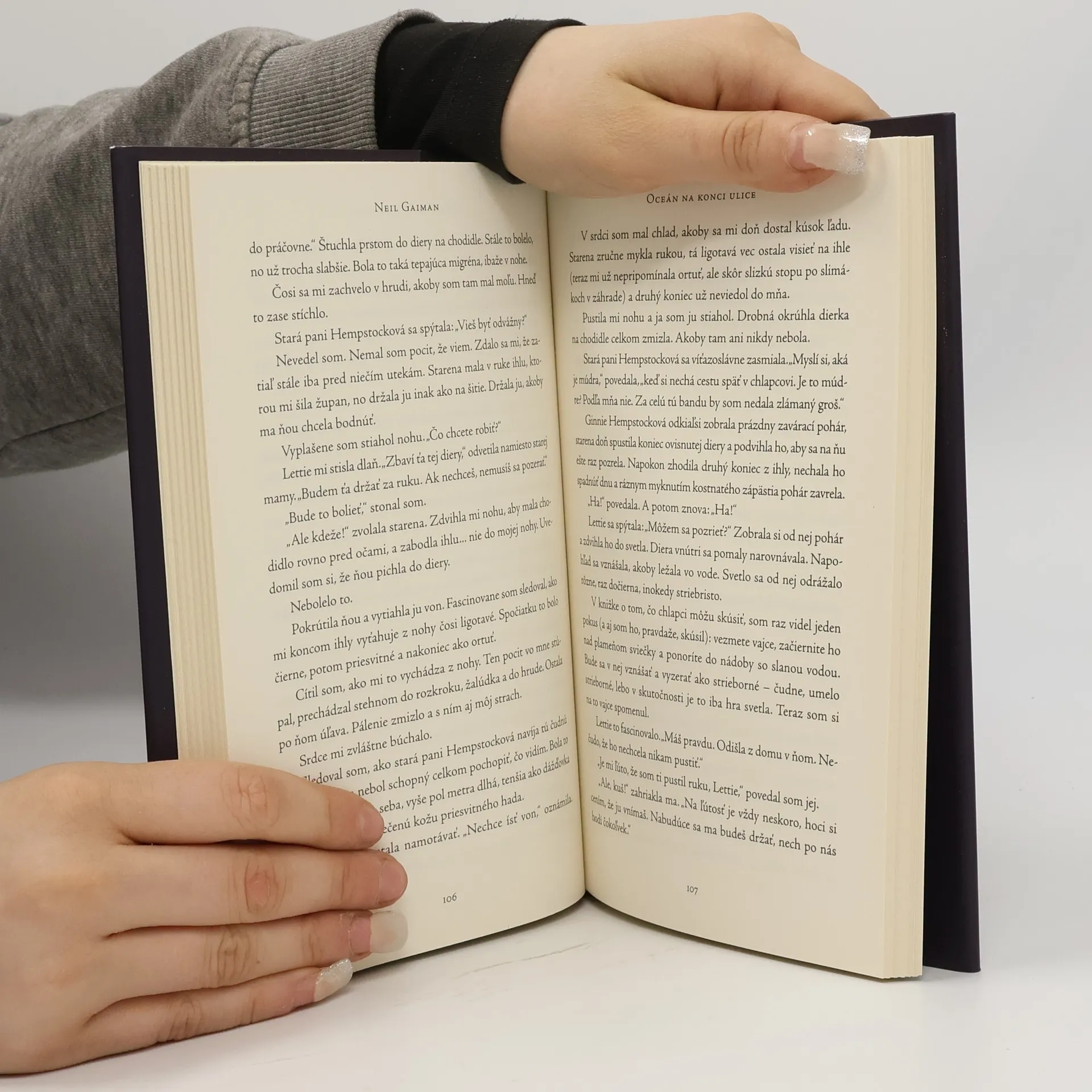 Jedného dňa, keď bol Neil Gaiman sám doma, jeho manželka práve niekde koncertovala, rozhodol sa, že si skráti čakanie a napíše pre ňu poviedku. Postupne však z poviedky vznikol román Oceán na konci ulice, v ktorom sa hlavný hrdina chystá na pohreb a vracia sa na miesta svojho detstva. Voľné chvíle pochmúrneho dňa vypĺňa potulkami po bývalom detskom kráľovstve. Vyberie sa až na samý koniec svojej ulice, kde ešte stále stojí farma Hempstockovcov, a stretne sa so starou pani Hempstockovou, matkou svojej kamarátky z detstva Lettie Hempstockovej, dá si čaj a odíde k jazierku s kačkami, ktorému Lettie hovorila oceán...