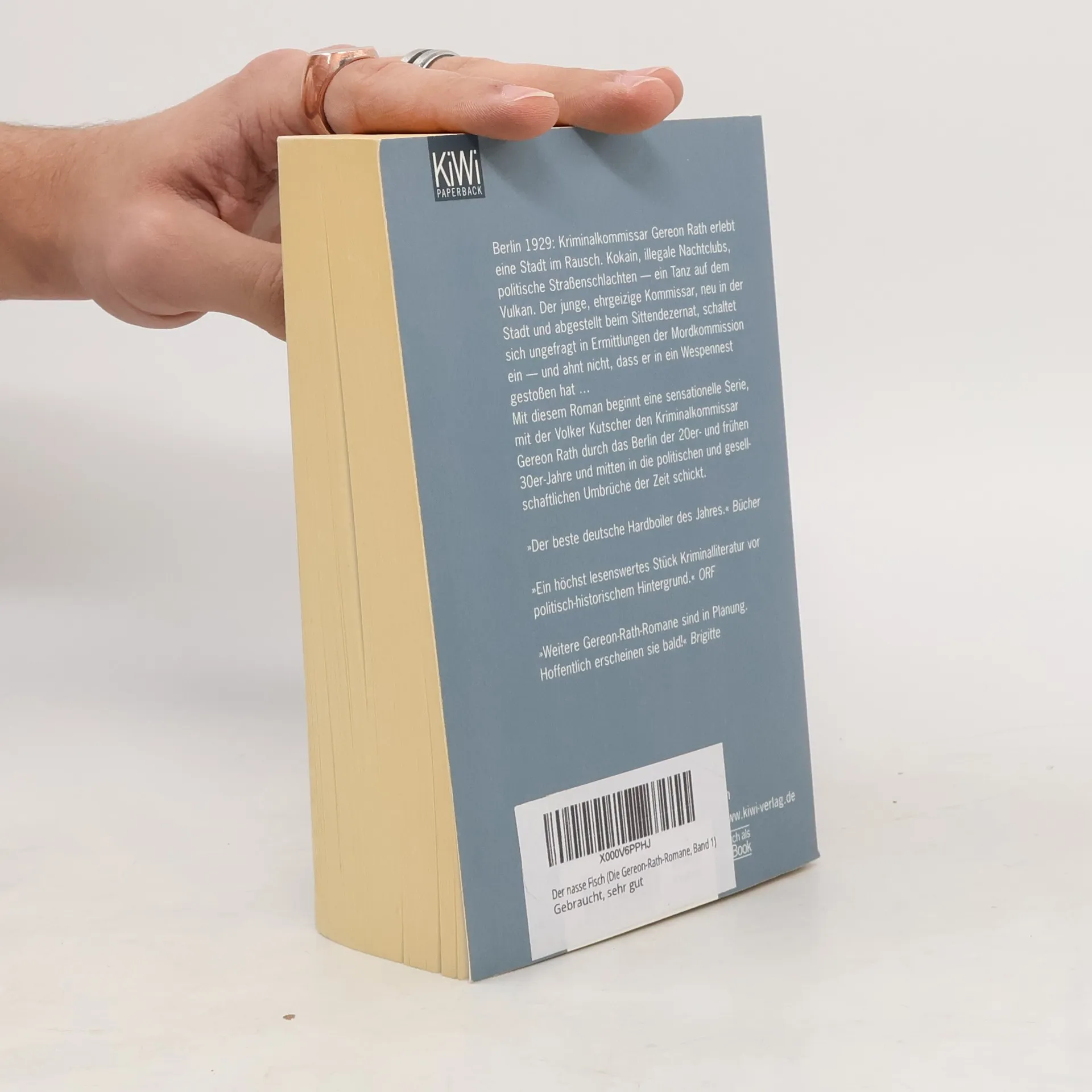 Der erste Fall der Gereon Rath-Bestsellerreihe: »Der nasse Fisch« jetzt als »Babylon Berlin« von Tom Tykwer verfilmt Mit diesem Roman begann eine sensationelle Serie, mit der Volker Kutscher den Kriminalkommissar Gereon Rath durch das Berlin der 20er- und frühen 30er-Jahre und mitten in die politischen und gesellschaftlichen Umbrüche der Zeit schickt. Volker Kutscher lässt das Berlin des Jahres 1929 lebendig werden. Sein Held Gereon Rath erlebt eine Stadt im Rausch. Kokain, illegale Nachtclubs, politische Straßenschlachten – ein Tanz auf dem Vulkan. Der junge, ehrgeizige Kommissar, neu in der Stadt und abgestellt beim Sittendezernat, schaltet sich ungefragt in Ermittlungen der Mordkommission ein – und ahnt nicht, dass er in ein Wespennest gestoßen hat. »Der beste deutsche Hardboiler des Jahres.« (Bücher)
