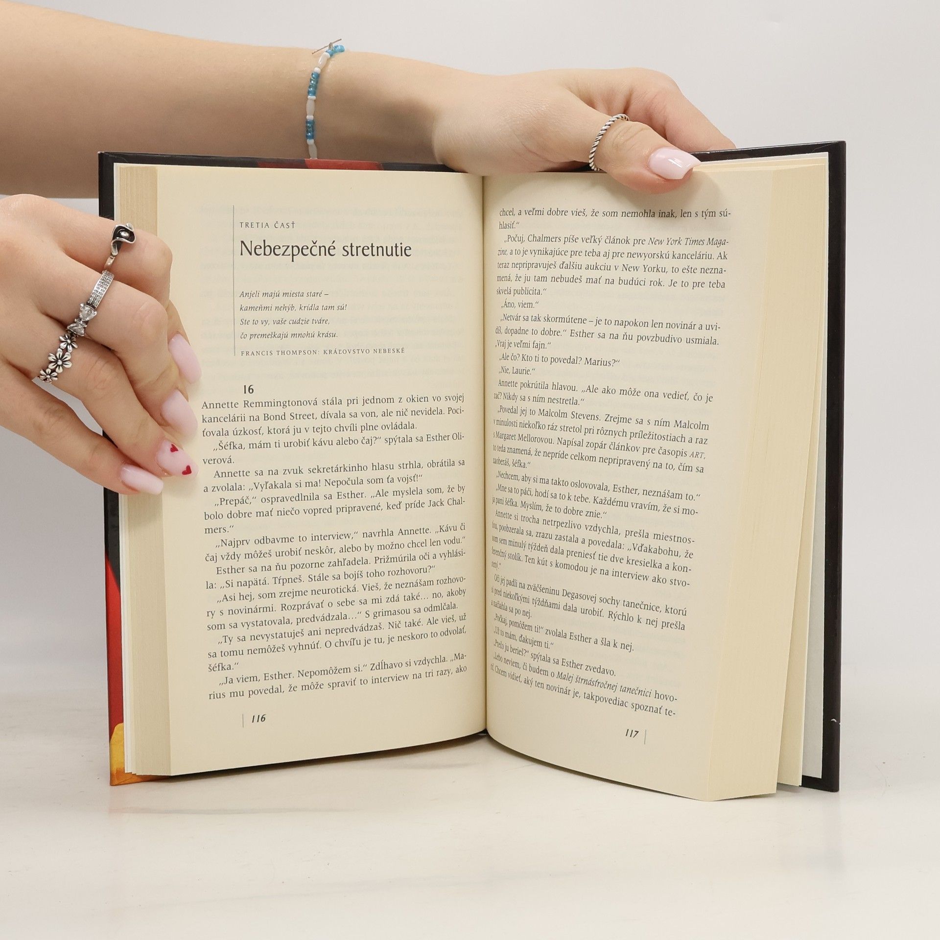 Bestseller Úklady a láska od populárnej autorky sa odohráva vo svete medzinárodného obchodu s umením. Annette Remmingtonová sa po boku svojho oveľa staršieho manžela Mariusa vypracovala na znalkyňu výtvarného umenia. Keď šťastnou náhodou objaví vzácny obraz Rembrandta, získa si slávu a uznanie umeleckých kruhov. Marius angažuje známeho novinára Jacka Chalmersa, aby o Annette napísal do prestížneho časopisu. Netuší však, že sa tým dopustil osudnej chyby...