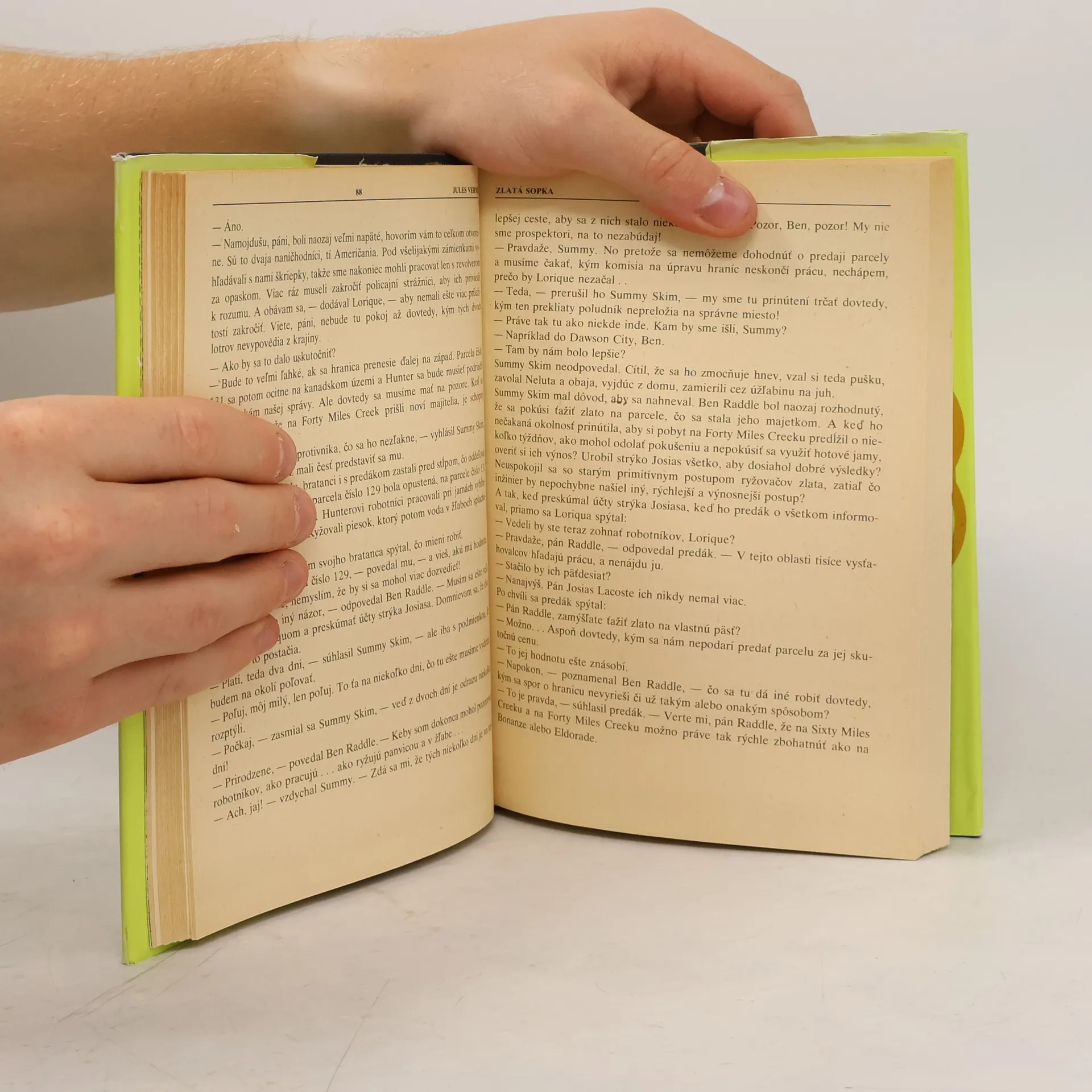 Zlatá sopka leží na pobreží zátoky Mackanzie. Objavil ju v období zlatej horúčky francúzsky zlatokop, ktorý zveril svoje tajomstvo priateľke... Kniha rozpráva príbeh dvoch mladíkov, Summa Skim a jeho bratranca Bena Raddleho, ktorí na Klondike zdedili po svojom strýkovi Lacoteovi zlatokopeckýclaim, ležiace na Miles Creek. Hoci sú finančne zabezpečení, obaja sa rozhodnú, že si svoje dedičstvo pôjdu pozrieť a pri tom skúsia zlatokopecké šťastie.