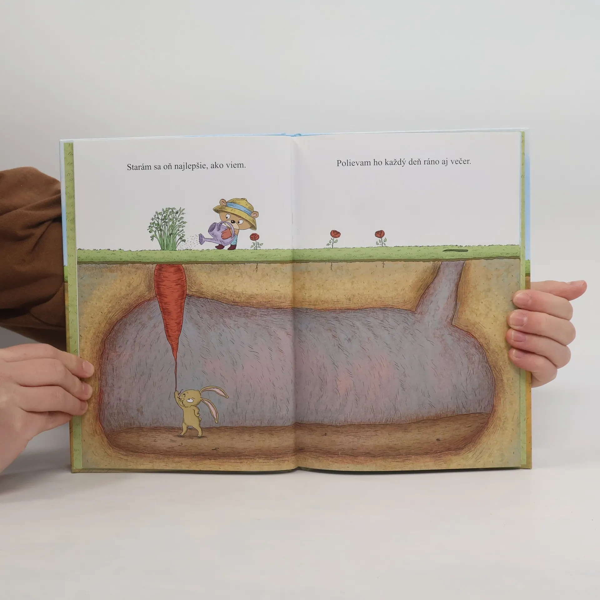 Tá je krásna! zaradoval sa medvedík, keď vo svojej záhradke objavil zvláštnu rastlinku. Každý deň ju polieval, chránil pred silným slnkom a nikdy jej pred spaním nezabudol popriať dobrú noc. No kvetinka nič. Prečo nekvitneš? dumal malý záhradník. Netušil však, čo sa zatiaľ deje pod zemou.