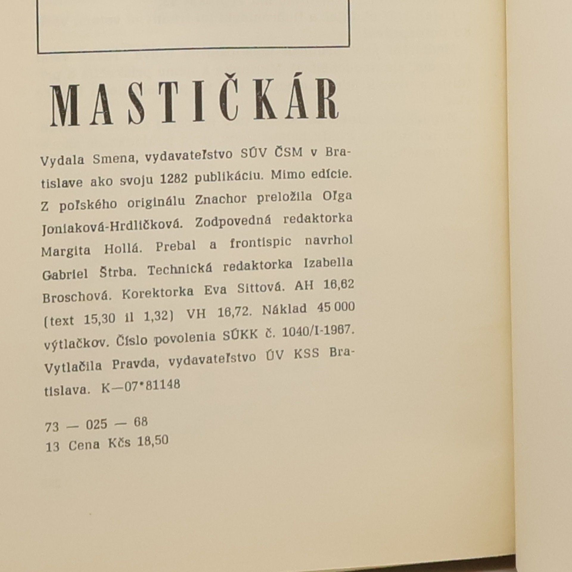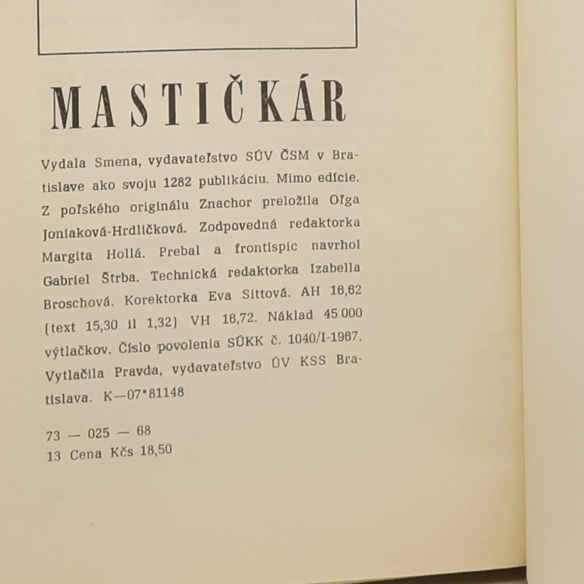 Mastičkár, Tadeusz Dołęga-Mostowicz