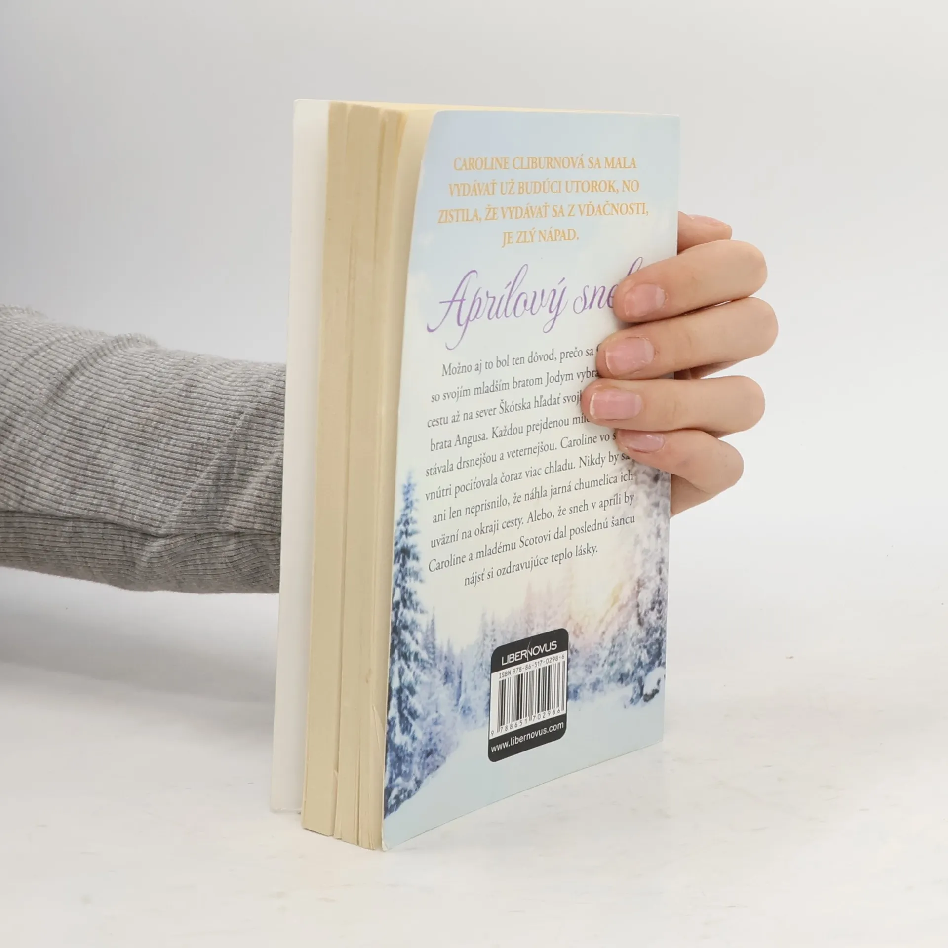 Caroline Cliburnová sa mala vydávať už budúci utorok, no zistila, že vydávať sa z vďačnosti je zlý nápad. Možno aj to bol ten dôvod, prečo sa Caroline so svojím mladším bratom Jodym vybrala na dlhú cestu na sever Škótska hľadať svojho nezvestného brata Angusa. Každou prejdenou míľou sa krajina stávala drsnejšou a veternejšou. Caroline vo svojom vnútri pociťovala čoraz viac chladu. Nikdy by sa jej ani len neprisnilo, že náhla jarná chumelica ich uväzní na okraji cesty. Alebo, že sneh v apríli by Caroline a mladému Škótovi dala poslednú šancu nájsť si ozdravujúce teplo lásky.