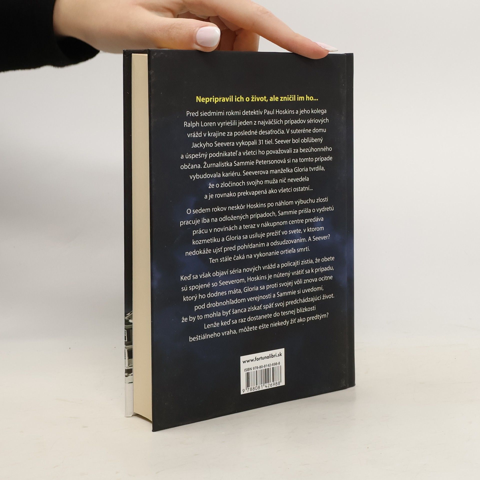 Nepripravil ich o život, ale zničil im ho... Pred siedmimi rokmi detektív Paul Hoskins a jeho kolega Ralph Loren vyriešili jeden z najväčších prípadov sériových vrážd v krajine za posledné desaťročia. V suteréne domu Jackyho Seevera vykopali 31 tiel. Seever bol obľúbený a úspešný podnikateľ a všetci ho považovali za bezúhonného občana. Žurnalistka Sammie Petersonová si na tomto prípade vybudovala kariéru. Seeverova manželka Gloria tvrdila, že o zločinoch svojho muža nič nevedela a je rovnako prekvapená ako všetci ostatní... O sedem rokov neskôr Hoskins po náhlom výbuch zlosti pracuje iba na odložených prípadoch, Sammie prišla o vydretú prácu v novinách a teraz v nákupnom centre predáva kozmetiku a Gloria sa usiluje prežiť vo svete, v ktorom nedokáže ujsť pred pohŕdaním a odsudzovaním. A Seever? Ten stále čaká na vykonanie ortieľa smrti. Keď sa však objaví séria nových vrážd a policajti zistia, že obete sú spojené so Seeverom, Hoskins je nútený vrátiť sa k prípadu, ktorý ho dodnes máta, Gloria sa proti svojej vôli znova ocitne pod drobnohľadom verejnosti a Sammie si uvedomí, že by to mohla byť šanca získať späť svoj predchádzajúci život. Lenže keď sa raz dostanete do tesnej blízkosti beštiálneho vraha, môžete ešte niekedy žiť ako predtým?
