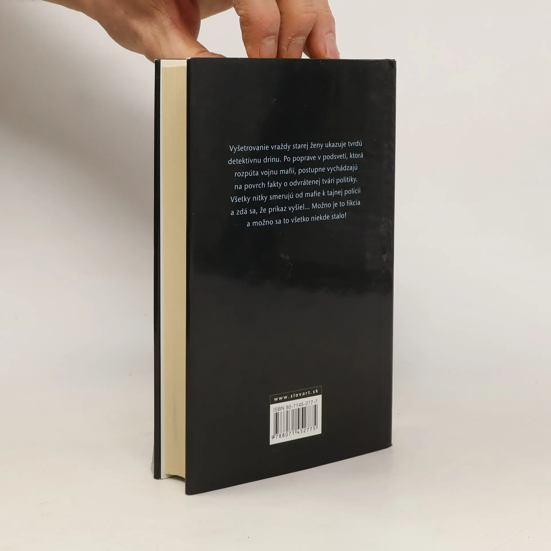 Naozaj neobyčajný detektívny román! Napísal ho človek, čo do detailov pozná policajné prostredie, podsvetie i praktiky tajných služieb. Často je však ťažké rozlíšiť, kto je kto. Detektívi Krausz a Fischer z oddelenia vrážd v Meste sa pri vyšetrovaní smrti mafiána Malého Pavúka, pobočníka Miroslava Stehlíka alias Bossa, dostanú k magnetofónovej kazete, na ktorej sa nebohý Malý Pavúk dohaduje s neznámym mužom na nejakom únose. Neskôr za podozrivých okolností vybuchne auto policajta Róberta Eliáša. Ukazuje sa, že vedel niečo o spolupráci tajnej služby a mafie pri únose syna vysokého predstaviteľa Republiky... Keď do seba začínajú kusy skladačky zapadať, z Ministerstva príde rozkaz vyšetrovanie zastaviť. Autor tvrdí: "Všetky osoby, dej a miesto v tejto knihe sú vymyslené a akákoľvek podobnosť so skutočnými udalosťami je čisto náhodná..." A možno nie !