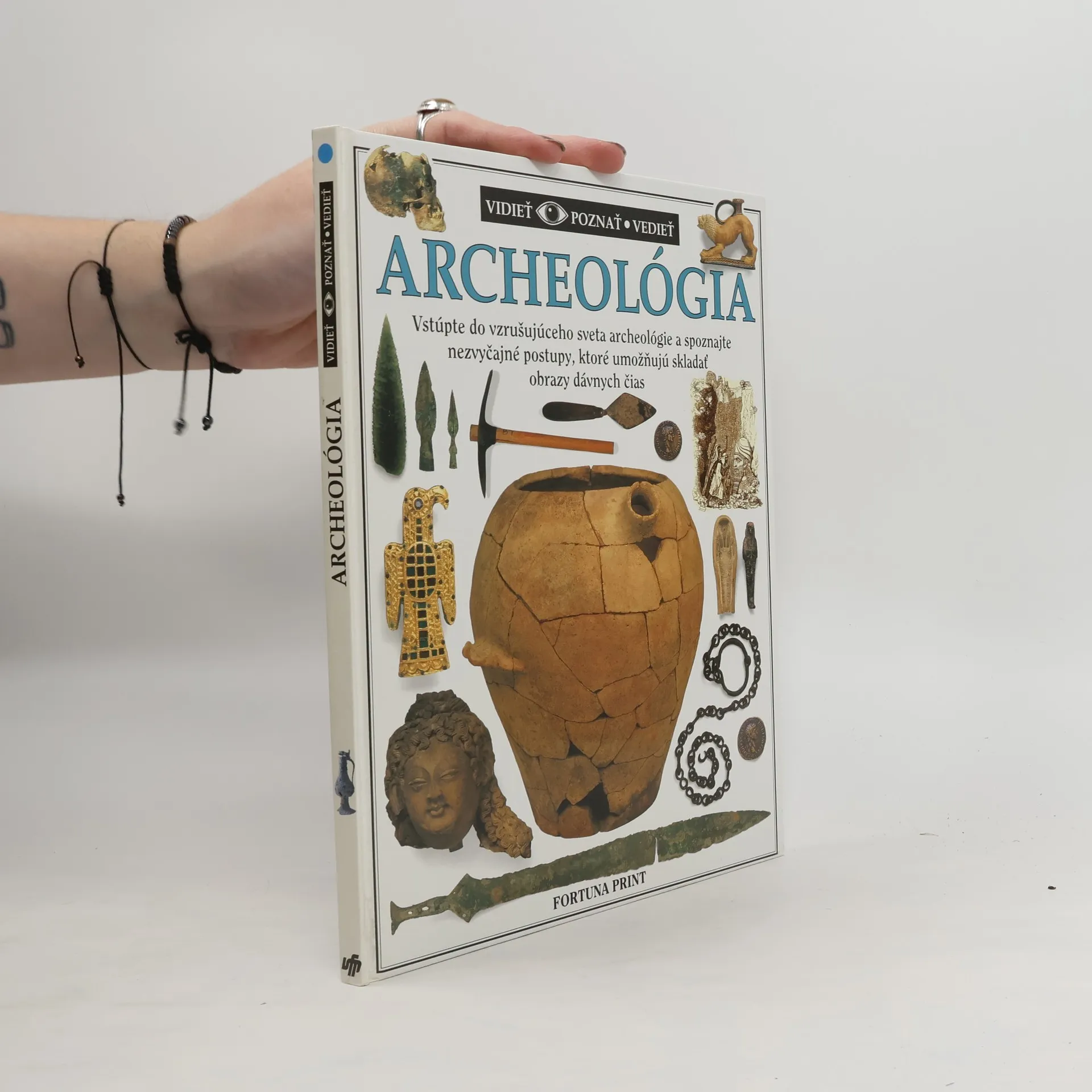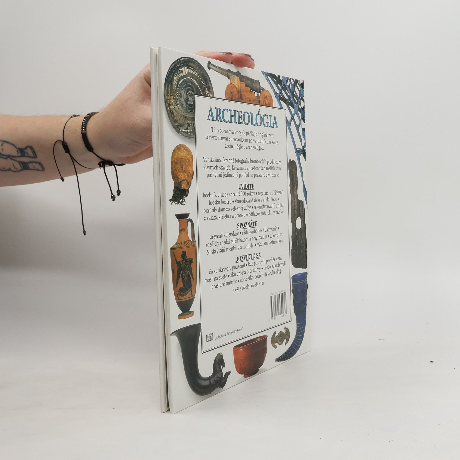 Táto obrazová encyklopédia je originálnym a perfektným sprievodcom po vzrušujúcom svete archeológie a archeológov. Vynikajúce farebné fotografie bronzových predmetov, dávnych stavieb, keramiky a nástenných malieb vám poskytnú jedinečný pohľad na prastaré civilizácie. Uvidíte bochník chleba spred 2000 rokov, najstaršiu objavenú ľudskú kostru, skorodované delo z vraku lode, okrúhly dom zo železnej doby, rekonštruovanú prilbu zo zlata, striebra a bronzu, odtlačok prízraku v piesku. Spoznáte drevené kalendáre, rádiokarbónové datovanie, rozdiely medzi falzifikátom a originálom, tajomstvo, čo skrývajú menhiry a mohyly, význam lastúrnikov. Dozviete sa, čo sa skrýva v podzemí, kde postavili prvý železný most na svete, ako erózia ničí domy, prečo sa uchovali prastaré múmie, čo všetko potrebuje archeológ a ešte oveľa viac. Kapitoly: Objavovanie minulosti, Uchovanie a rozklad, Pod zemou, Skúmanie krajiny, Rozličné dokumenty, Výjavy z minulosti, Prechádzky minulosťou, Prečo skúmať ?, Odkrývanie minulosti, Všetko má svoje miesto, Mohyly a monumenty, Páľava a sucho, Uchované v ľade, Podmorská archeológia, Uchované vo vode, Konzervácia materiálu, Ľudské ostatky, Potrava a prostredie, Skúmanie každodenného života, Kľúče k obchodu a remeslám, Stavby minulosti, Datovanie minulosti, Kópie a falzifikáty, Experimentálna archeológia, Industriálna archeológia, Minulosť pre budúcnosť.