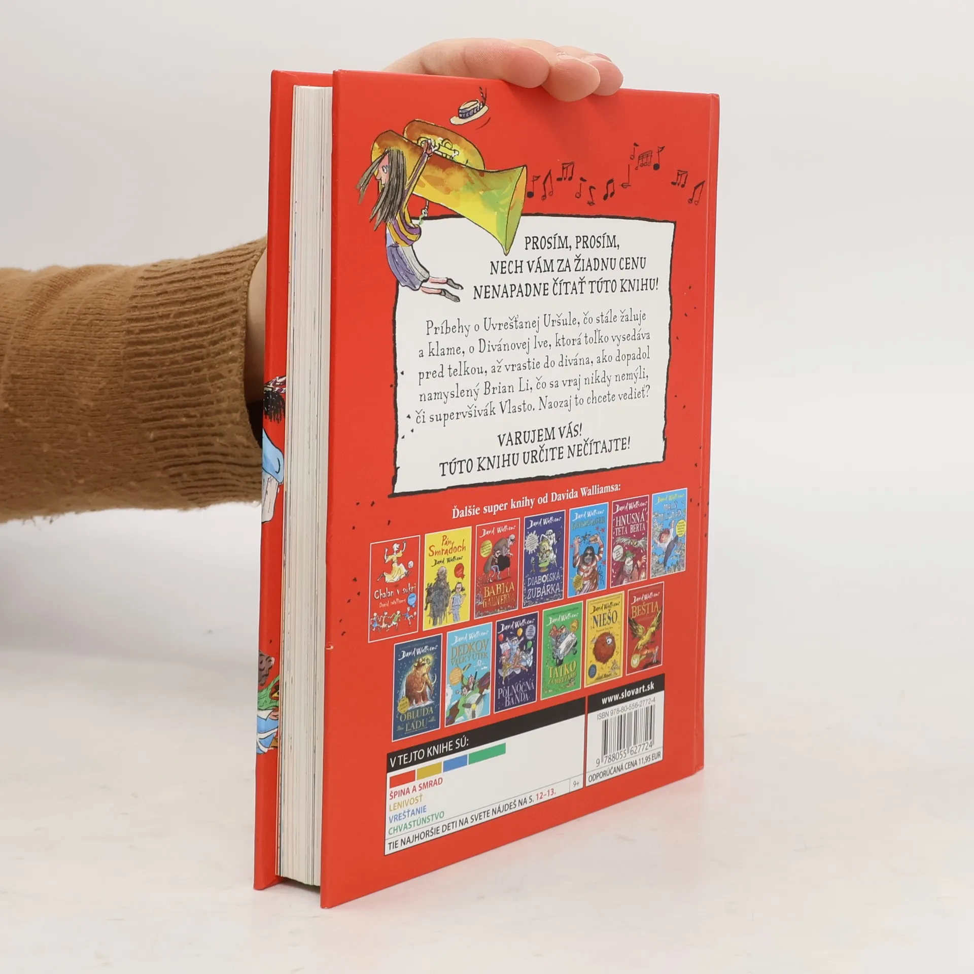 Ďalšia kniha od svetoznámeho britského komika a autora detských kníh Davida Walliamsa má na rozdiel od tých predošlých farebné ilustrácie a tvoria ju poviedky. Ako inak by mohla do detailov opísať tie najhoršie, ale naozaj naj, naj, najhoršie deti na svete. Ste pripravení? Máte dosť odvahy? Zvládnete stretnutie s desiatimi najhoršími deťmi na svete? Päť malých naničhodníkov a päť darebáčok. Divánová Iva – pozerá telku tak často, až prirastie k divánu. Slintoš Samo – slintá toľko, až sa na školskom výlete dostane do poriadnej kaše. Uvrešťaná Uršuľa je zas dievčisko, ktoré neustále fňuká a vymýšľa si. A, samozrejme, nesmieme zabudnúť aj na najobľúbenejšiu postavu, trafikanta Raja. Čítajte a inšpirujte sa! Komu sa kniha môže páčiť: Malým srandistom a lapajom, ktorí sa chcú nasmiať do popuku na tých najhorších deckách na celom svete.