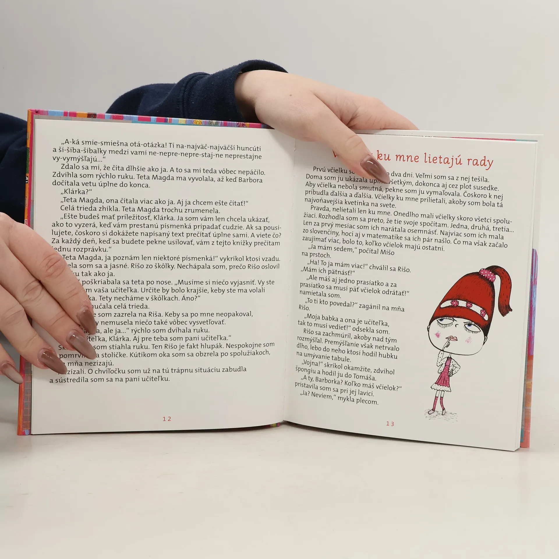 Väčšina detí prichádza do prvej triedy s obavami, aké to tam bude, či to zvládnu, či bude pani učiteľka dobrá… Ale to sa netýka Kláry. Klára má babku učiteľku, svoju školu už pozná, pozná aj učiteľky, lebo sa stretávajú s babkou, ba vie už aj čítať. V škole je preto suverénna a svoju prevahu dáva všetkým najavo. Zrazu však zažije veľké prekvapenie — zistí, že aj iné deti sú šikovné, ba môžu byť aj šikovnejšie, a to Kláru vyburcuje k zúrivému súťaženiu a porovnávaniu. Neváha dokonca nútiť babku učiteľku, aby jej protekčne vybavila výhody, keď nejde všetko podľa jej priania. Našťastie, je tu dedko, ktorý jediný povie svojej vnučke pravdu, aj keď je nepríjemná, a Klára si napokon uvedomí, prečo nedokáže zniesť prehru a prečo nemá kamarátky. Prvá kniha ponúka dieťaťu veselé príbehy zo školských lavíc a spolu s vtipnými ilustráciami ho bude sprevádzať aj cez prvé školské prázdniny, keď si ju už bude čítať ako naozajstný žiak. Bonus: na konci knihy je malá dramatizácia rozprávky, ktorú môžu prváčikovia nacvičiť s pani učiteľkou.