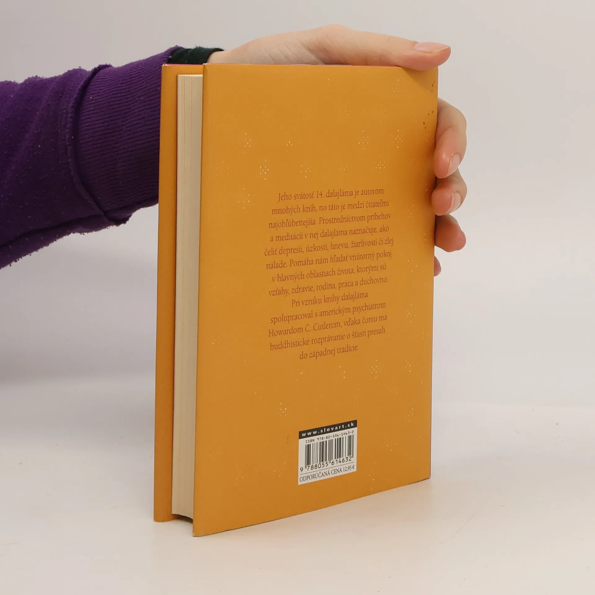 Jeho svätosť 14. dalajláma je autorom mnohých kníh, no táto je jeho najpredávanejšou. Prostredníctvom meditácií a príbehov v nej dalajláma ukazuje, ako čeliť depresii, úzkosti, hnevu, žiarlivosti alebo zlej nálade. Pomôže nám nájsť vnútorný pokoj v hlavných oblastiach života, ktorými sú vzťahy, zdravie, rodina, práca a duchovno. Pri vzniku knihy dalajláma spolupracoval s americkým psychiatrom Howardom C. Cutlerom, vďaka čomu má buddhistické rozprávanie o šťastí presah do západniarskej tradície.