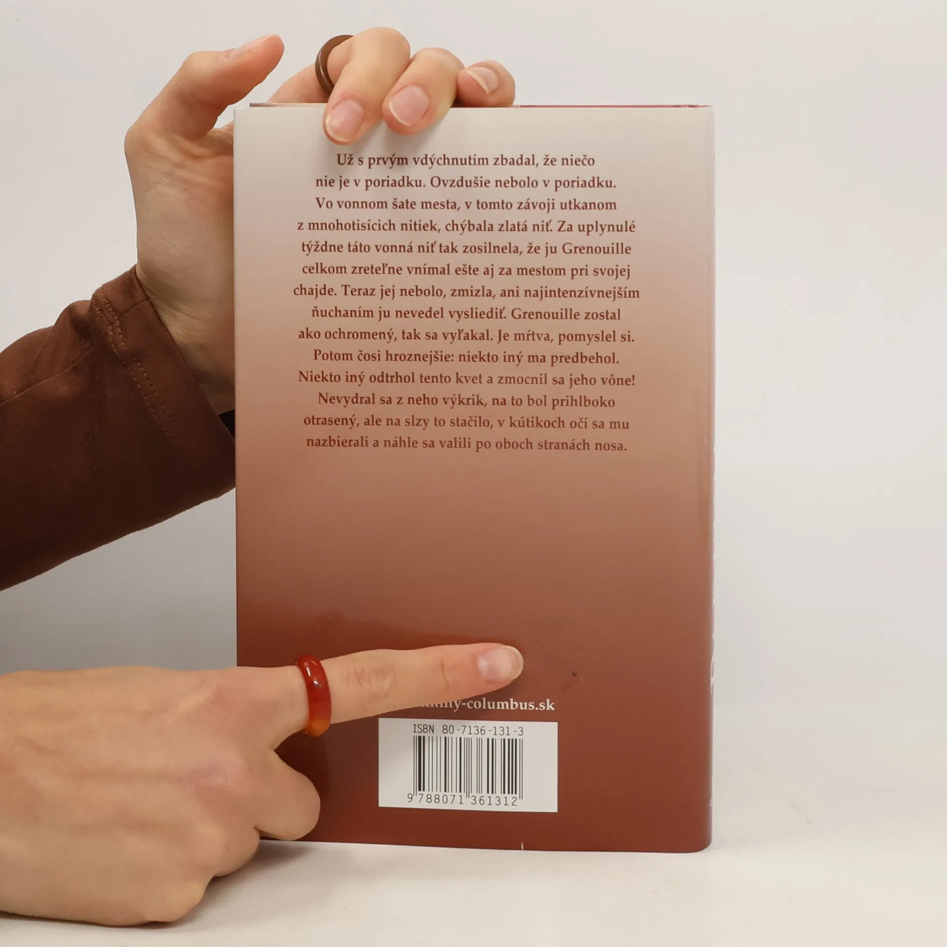 Keď počujeme názov mesta Paríž, azda sa nám trochu zakrúti hlava: z krásy, zo všemožných vôní, ktoré toto mesto šarmu a elegancie ponúka. Iste bol taký aj v 18. storočí, no v Suskindovej knihe ho pozorujeme z opačnej strany. Pach stoky a plesnivých rýb v stánku, kde predávala žena, ktorá prechádza životom akoby bez závanu lásky a práve jej sa narodí neduživý chlapec, ktorý má vlastnosti génia – svojim nosom vie zachytiť, detailne opísať a charakterizovať všetky vône, ktoré sa okolo neho mihnú.
