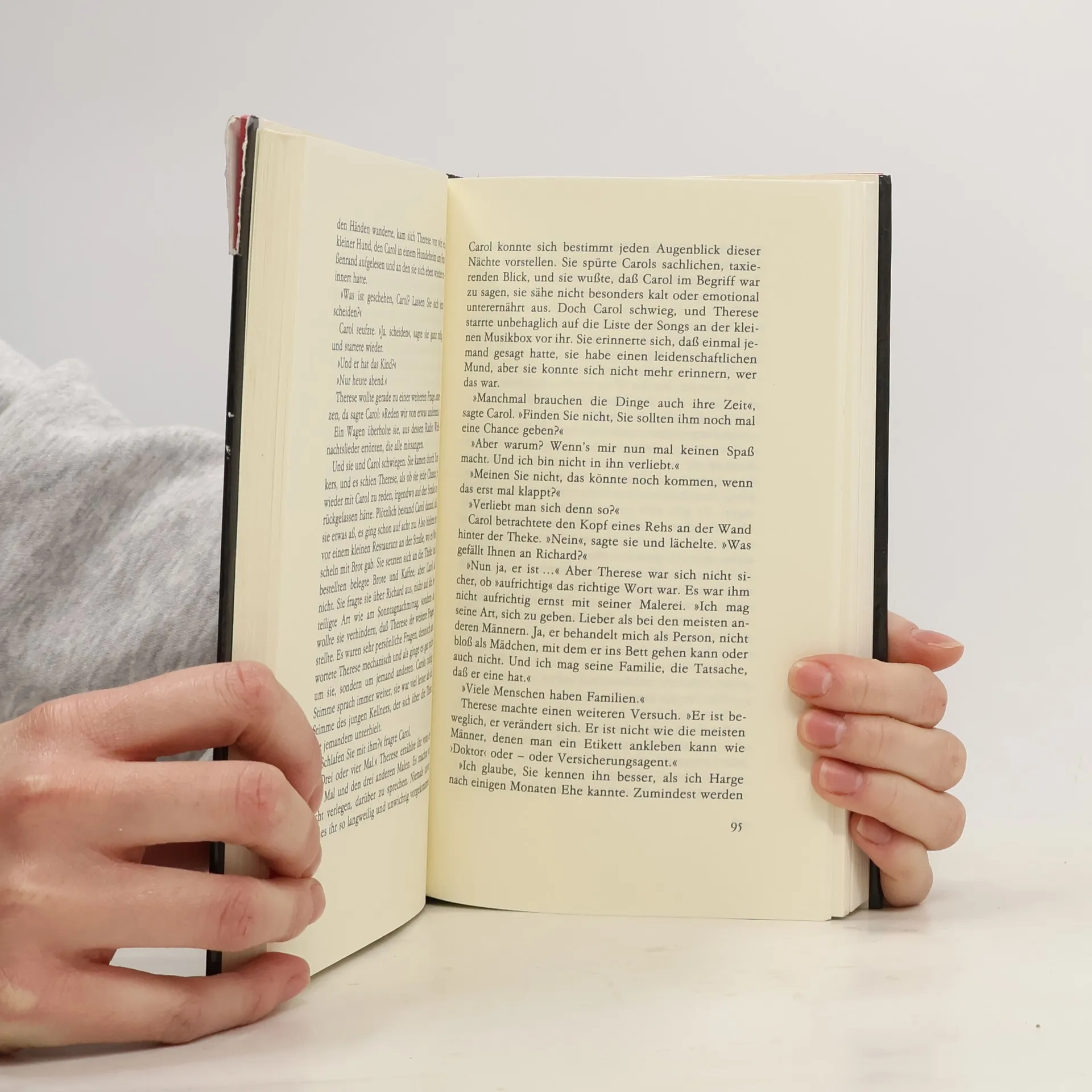 Die erste deutsche Übersetzung erschien 1990 unter dem Titel Carol im Diogenes Verlag. Eine ganz normale Geschichte, nur daß 1952, als der Kultroman einer lesbischen Liebe in McCarthys Amerika erstmals unter Pseudonym erschien, dort alles als verdächtig galt, was etwas anders war. Salz und sein Preis ist Patricia Highsmiths einziger Roman, der von erfüllter Liebe handelt, die als Glück empfunden wird und nicht als böser Wahn. Nie wieder schreibt die Autorin, die den Roman unter dem Eindruck einer persönlichen Begegnung begann, so sinnlich, so poetisch, so erotisch. "
