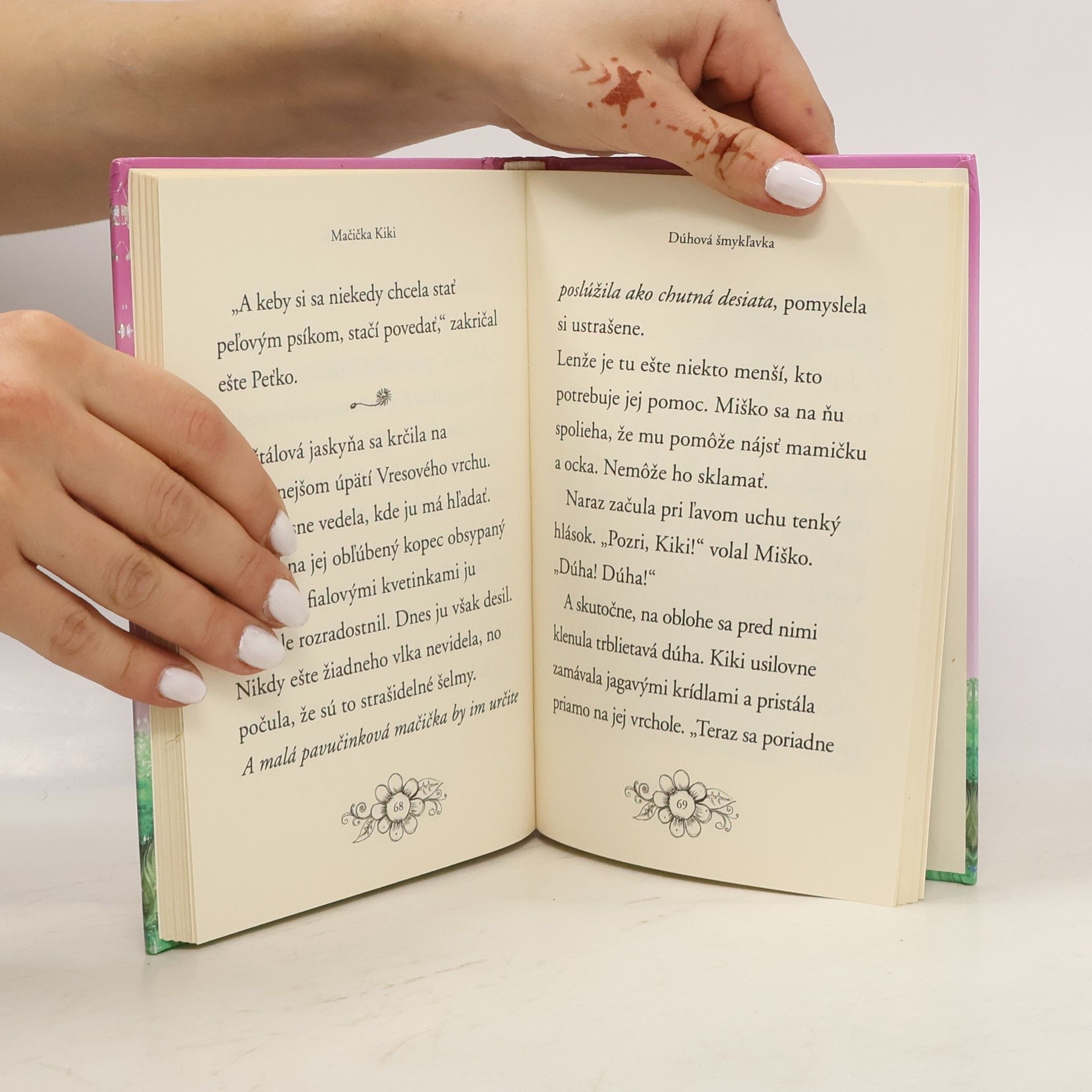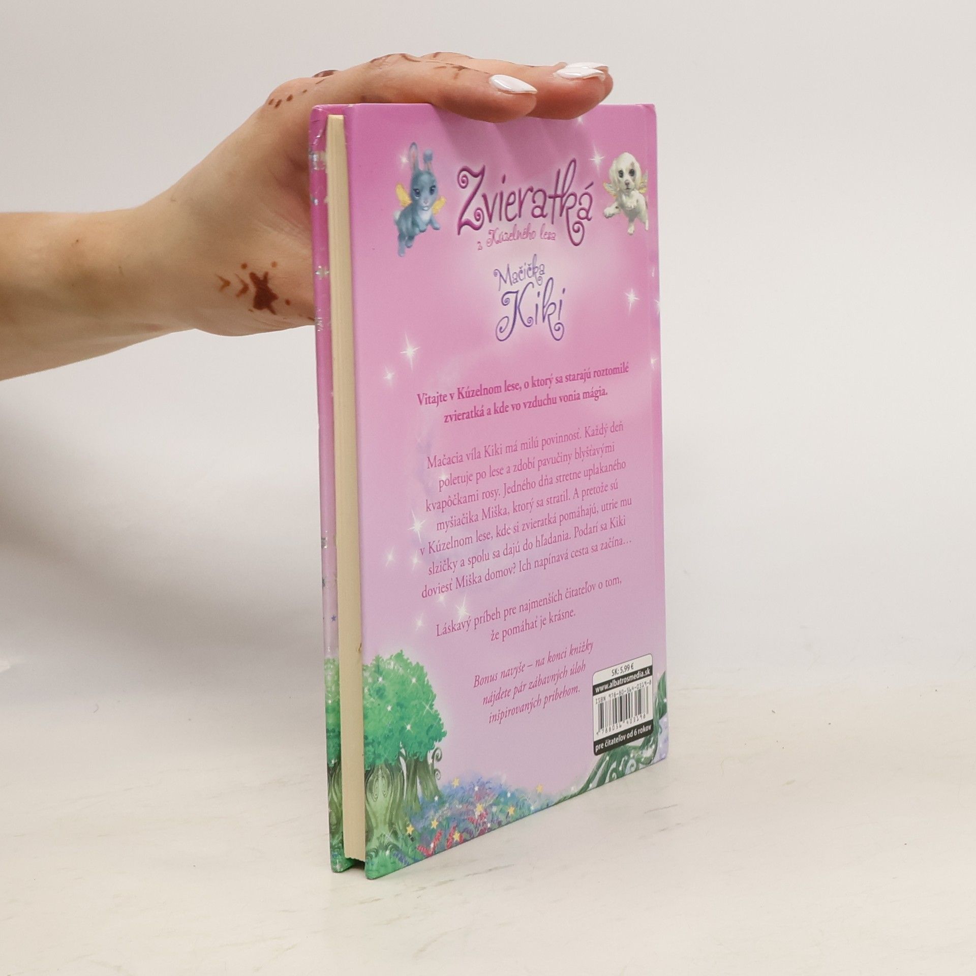 Mačacia víla Kiki má milú povinnosť. Každý deň poletuje po lese a zdobí pavučiny blyšťavými kvapôčkami rosy. Jedného dňa stretne uplakaného myšiačika Miška, ktorý sa stratil. A pretože sú v Kúzelnom lese, kde si zvieratká pomáhajú, utrie mu slzičky a spolu sa dajú do hľadania. Podarí sa Kiki doviesť Miška domov? Ich napínavá cesta sa začína... Bonus navyše – na konci knižky nájdete pár zábavných úloh inšpirovaných príbehom.