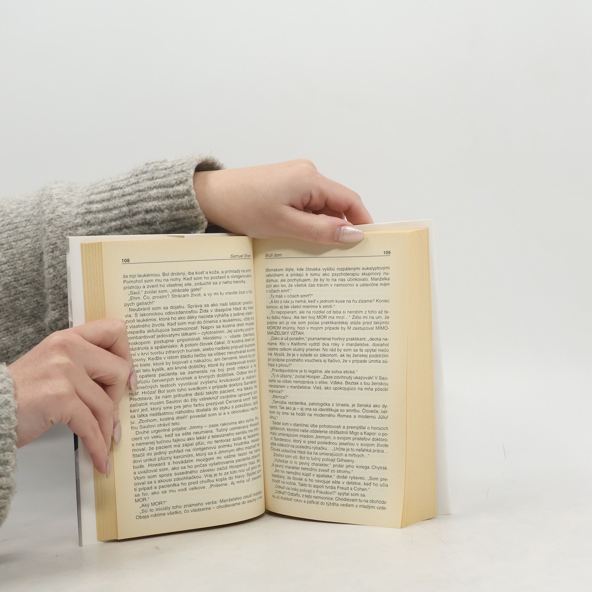 Román z lékařského prostředí s výraznými autobiografickými prvky, který při svém uvedení na americký knižní trh v roce 1978 způsobil doslova poprask v literárních i medicínských kruzích a je od té doby přirovnáván k Hellerovu románu Hlava 22 - tak jako Heller demýtizoval armádu, tak Shem píchl do vosího hnízda amerického zdravotnictví. Vylíčení poměrů v severoamerické nemocnici by se mohlo zdát příliš kruté, příliš syrové, příliš šokující, příliš přesexualizované, příliš přitažené za vlasy... je ale pravdivé. A dlužno podotknout, že není nijak zvlášť specifické jen pro americké poměry.