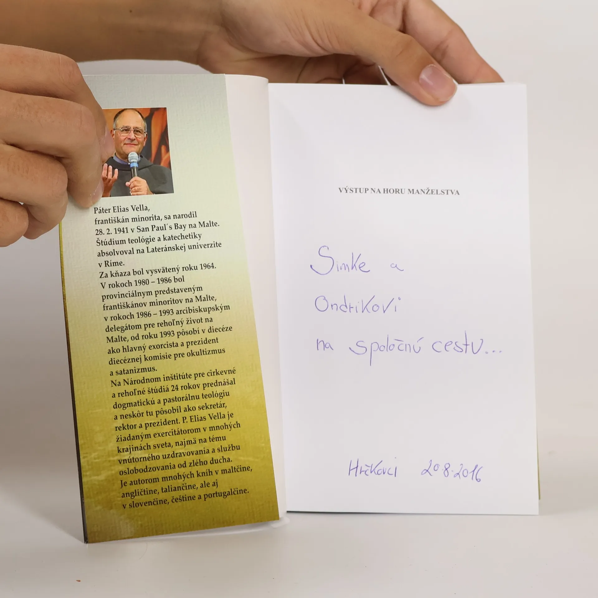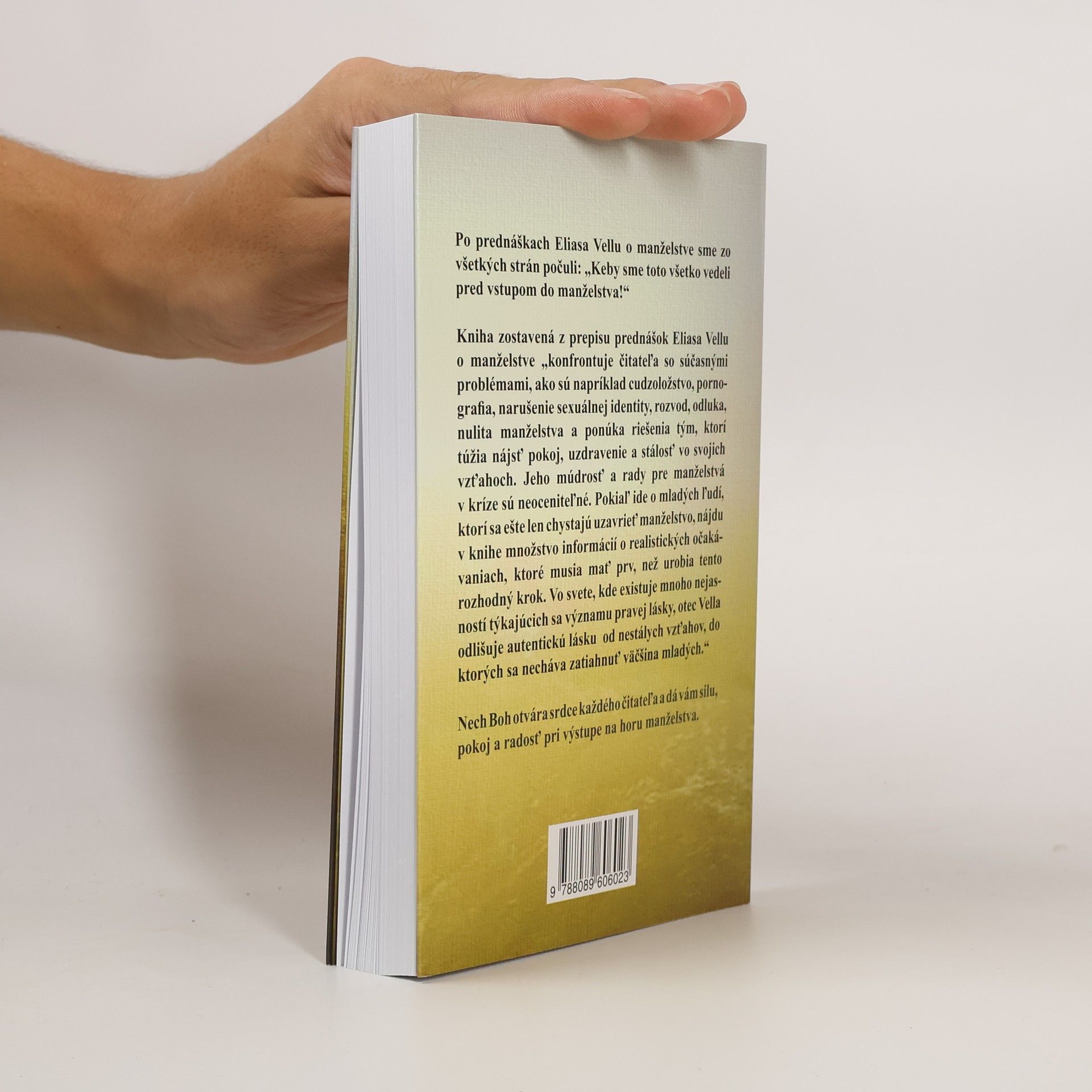 Po prednáškach Eliasa Vellu o manželstve sme zo všetkých strán počuli: „Keby sme toto všetko vedeli pred vstupom do manželstva!“ Kniha zostavená z prepisu prednášok Eliasa Vellu o manželstve "konfrontuje čitateľa so súčasnými problémami, ako sú napríklad cudzoložstvo, pornografia, narušenie sexuálnej identity, rozvod, odluka, nulita manželstva a ponúka riešenia tým, ktorí túžia nájsť pokoj, uzdravenie a stálosť vo svojich vzťahoch. Jeho múdrosť a rady pre manželstvá v kríze sú neoceniteľné. Pokiaľ ide o mladých ľudí, ktorí sa ešte len chystajú uzavrieť manželstvo, nájdu v knihe množstvo informácií o realistických očakávaniach, ktoré musia mať prv, než urobia tento rozhodný krok. Vo svete, kde existuje mnoho nejasností týkajúcich sa významu pravej lásky, otec Vella odlišuje autentickú lásku od nestálych vzťahov, do ktorých sa necháva zatiahnuť väčšina mladých.“ Prvé vydanie