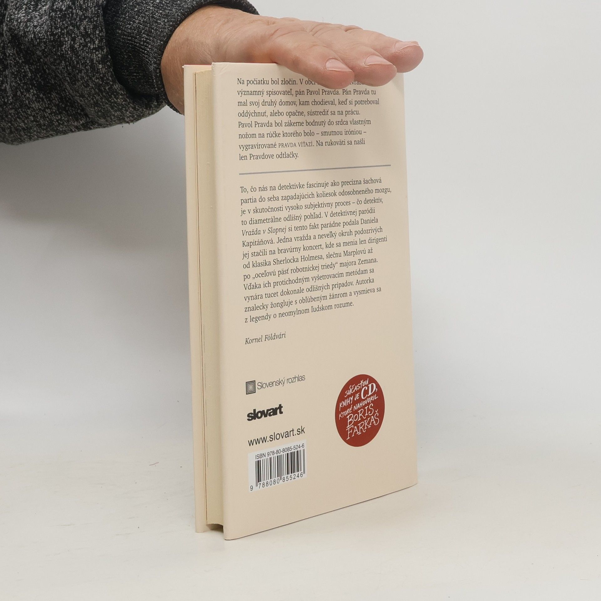 Slopná je nenápadné, zastrčené slovenské mestečko, a predsa sa v ňom zídu najbystrejšie mozgy svetovej detektívnej literatúry, nechýba slečna Marplová, večne pletúca čosi ružové, Sherlock Holmes či Dempsey a Makepeaceová. Prostredie, kde sa nachádzajú a kde našli zavraždeného významného slovenského spisovateľa Pravdu, neumožňuje veľa riešení, a predsa každý z geniálnych mozgov to svoje má. Kto z nich prípad rozlúšti a nepríde tak o slávu a renomé?