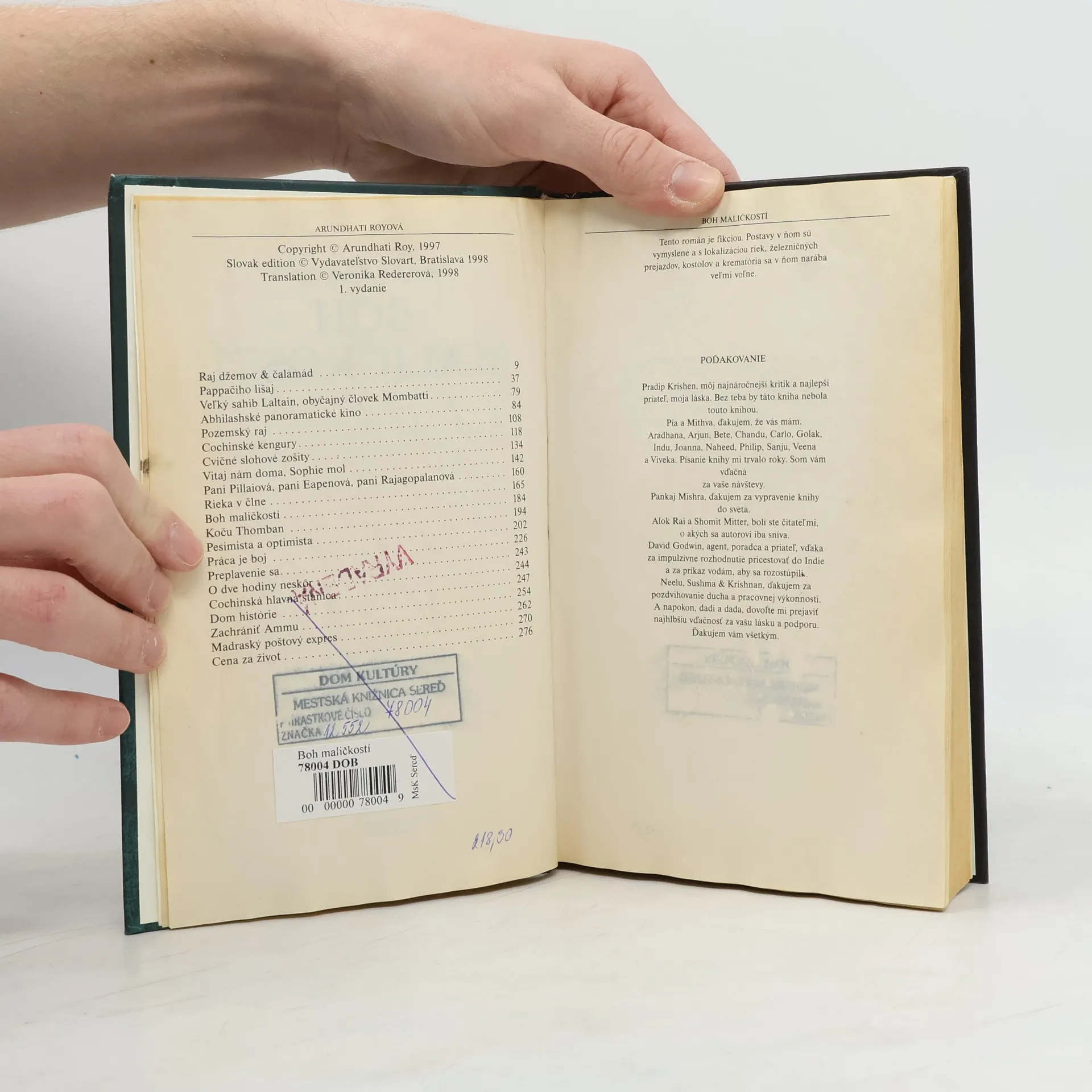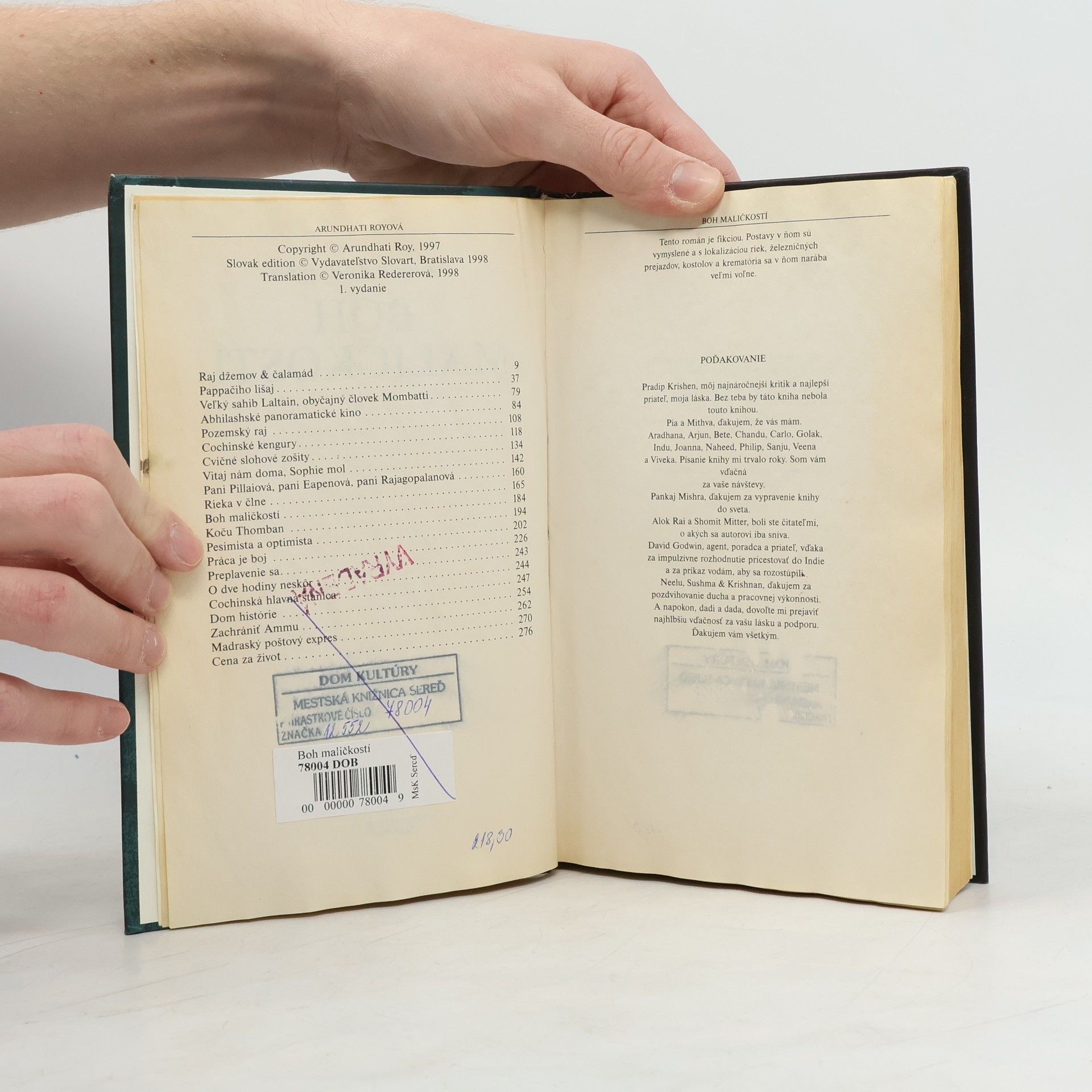 Fascinujúci príbeh o nedovolenej láske rozprávaný lahodným a omamným hlasom... hlasom, ktorý svojím čarokrásnym zafarbením vyvoláva zimomriavky a berie dych. Tento román rozochvieva čitateľa živými tragickými tónmi a od začiatku mu nedovolí zapochybovať o svojich kvalitách. Román indickej spisovateľky bol ocenený ako najlepší román v angličtine roku 1997. Edícia MM.
