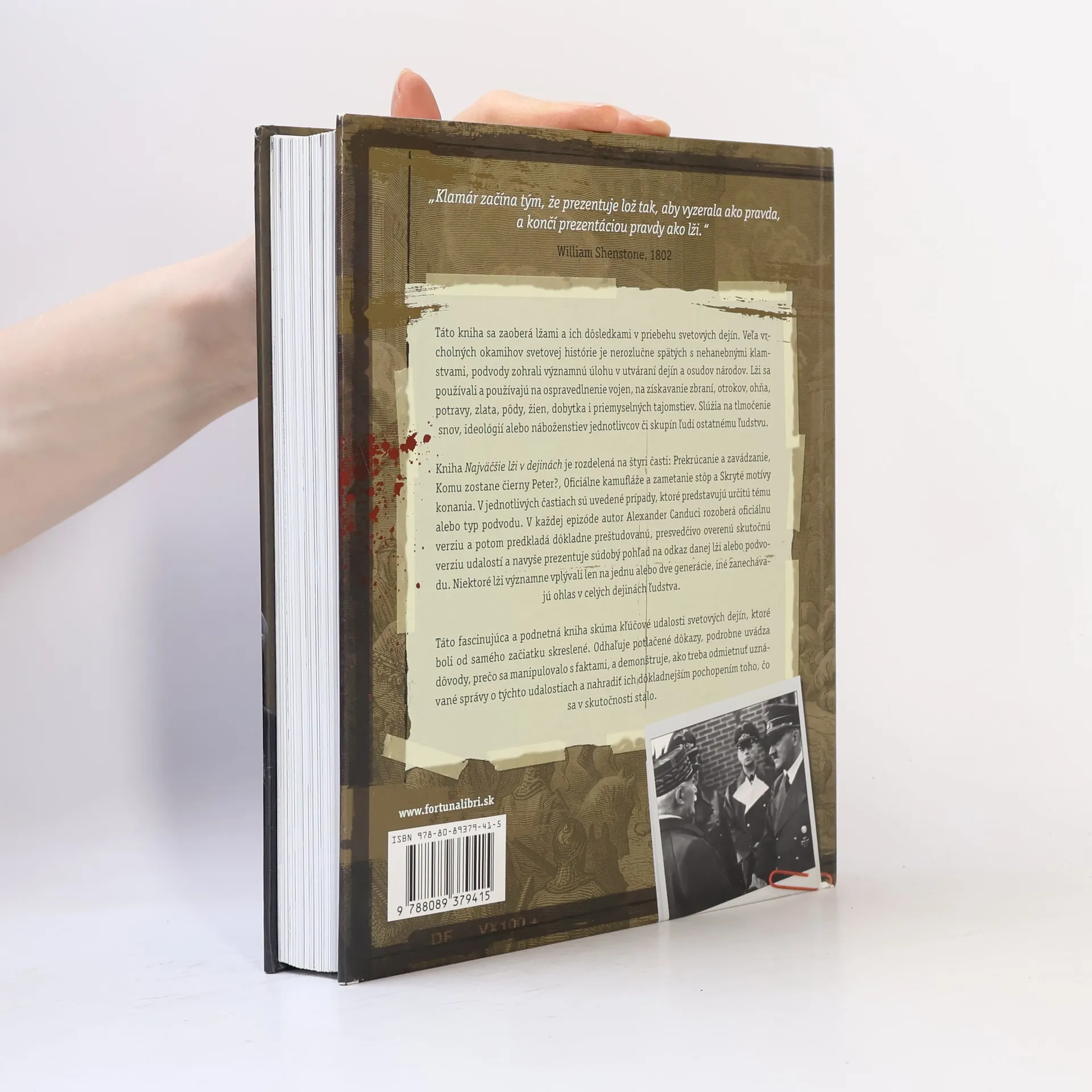 Kniha "Najväčšie lži v dejinách" hovorí o klamstvách, ktoré zanechali vo svete trvalé následky. Sú to lži, ktoré spôsobili veľké utrpenie, viedli k vojnám a k porušovaniu ľudských práv. Je o tom, ako prekrúcanie, zavádzanie, zbavovanie sa zodpovednosti a zamlčiavanie skutočností vysokých politických činiteľov formovalo tento svet. Najväčšie lži v dejinách sú zaujímavou a strhujúcou knihou, ktorá analyzuje kľúčové udalosti svetových dejín, a na základe nezvratných dôkazov odhaľuje skutočnú tvár pravdy.